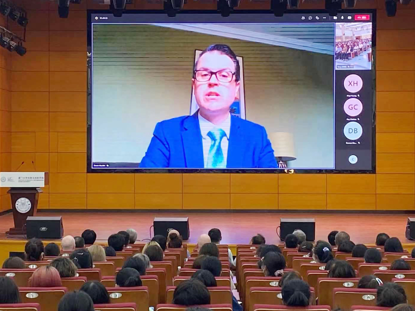 Prof. Simon Macklin extended his welcome and congratulations to all the freshmen through video. He said that the university study life in the next four years will be infinitely exciting, and students will fully experience the integration and collision of educational diversity between XMU and UCA. He hoped that the students could devote themselves to learning, read widely, think deeply, practice continuously, dare to express, have the courage to try, not be afraid of failure, and continuously enhance their innovative awareness and ability. He wished the students become leaders of future creative industry.