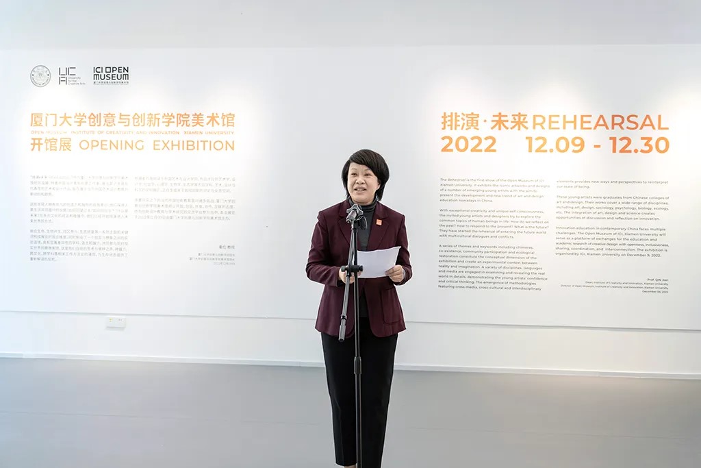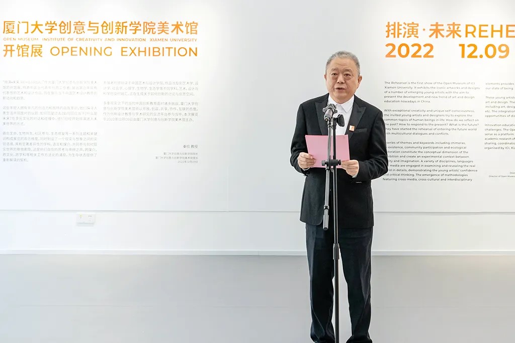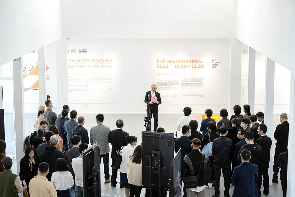 The exhibition of Rehearsal·Future organized by ICI Open Museum was officially launched as scheduled on the morning of December 9. Attendees from relevant departments of Zhangzhou Economic Development Zone, museums, art galleries, art centres and related enterprises in Xiamen, as well as departments and colleges of XMU, other colleges and universities, leaders from the high and primary schools attached to XMU, and ICI faculty gathered together to witness the opening ceremony of the exhibition and paid a visit to it.