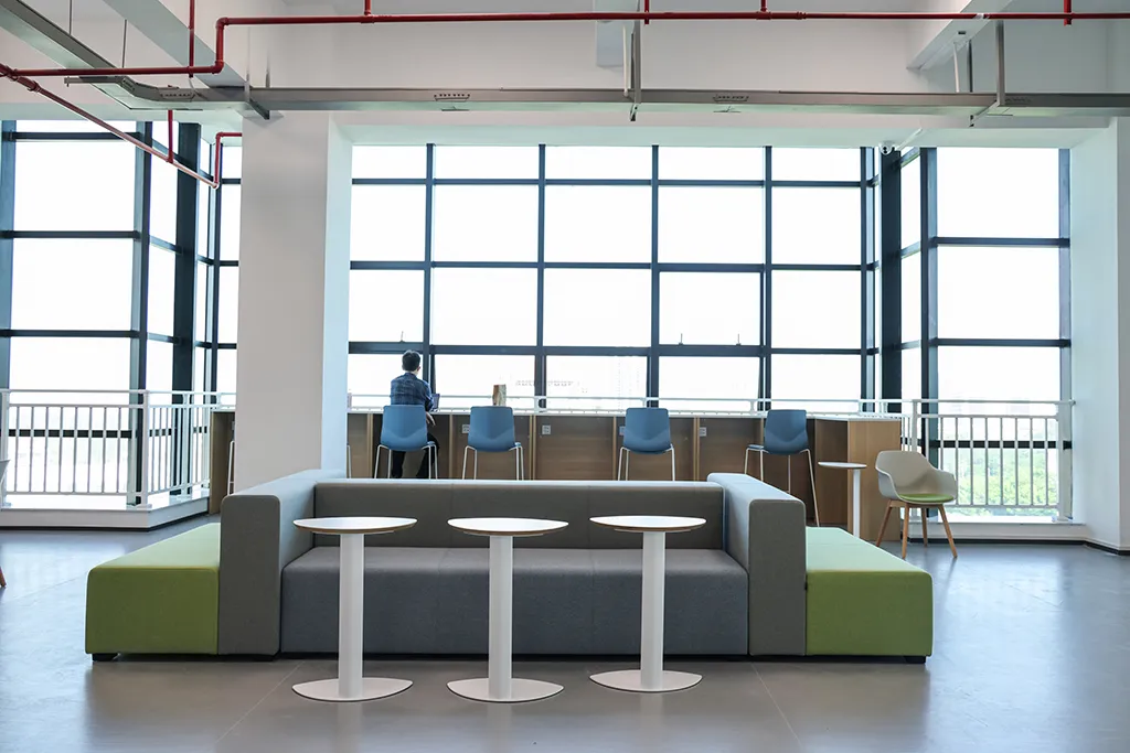 Chang Xifei, a student majoring in Environmental Design, commented on the newly renovated teaching buildings by saying: “The design of the interior decoration in the teaching building looks simple yet not commonplace, creating a strong artistic atmosphere where we attend classes. And every inconspicuous detail of the design on each floor reflects the care ICI shows about its students. Each seat at the bar counter is equipped with a socket, and many small tables are placed around the sofas… All of this makes our studying more comfortable and efficient.”