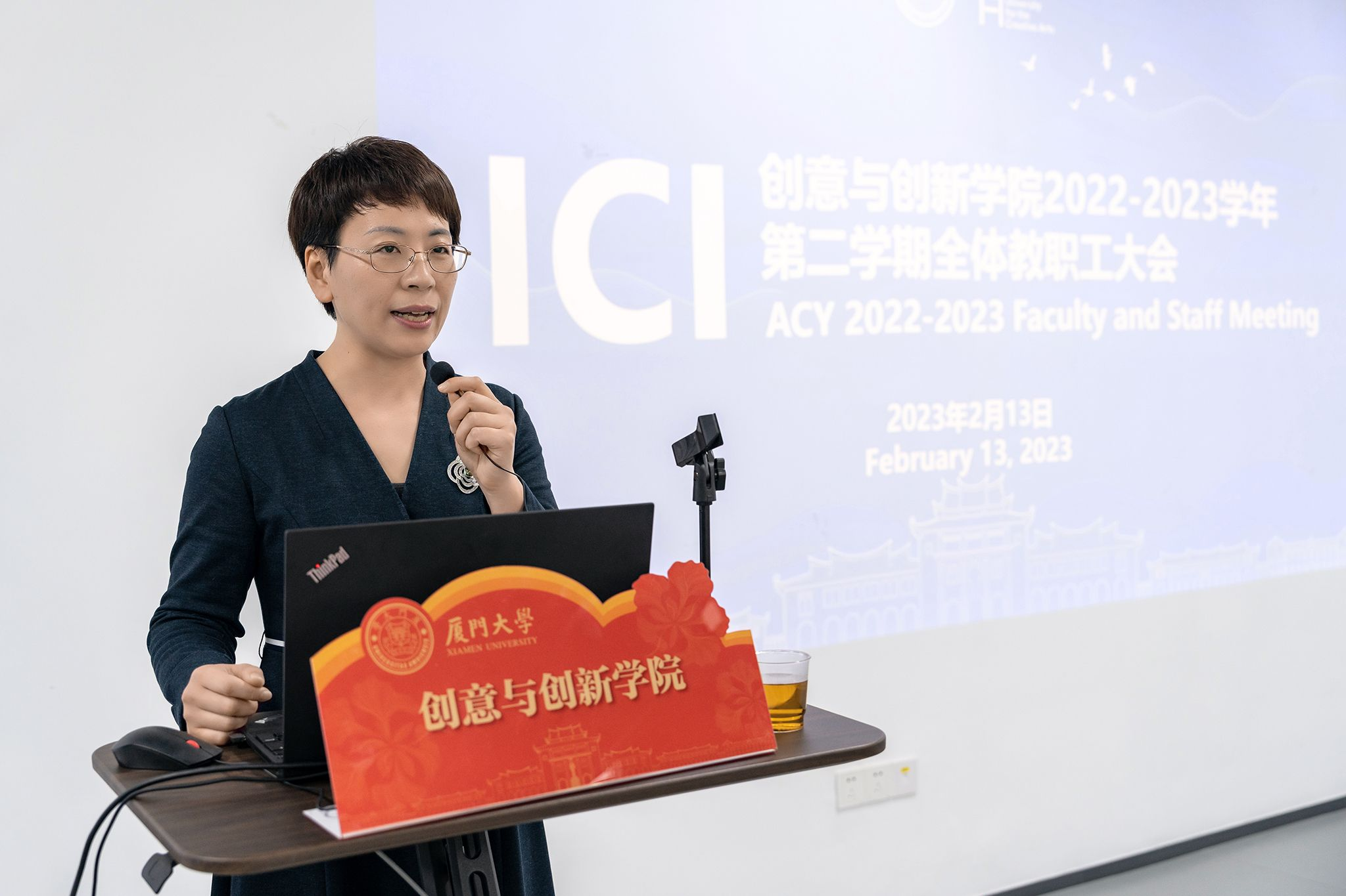 On the afternoon of February 13, the Institute of Creativity and Innovation (ICI) held a faculty and staff meeting. All the faculty and staff members of both sides attended the meeting, which was presided over by Huang Chen, Deputy Dean of the ICI.
