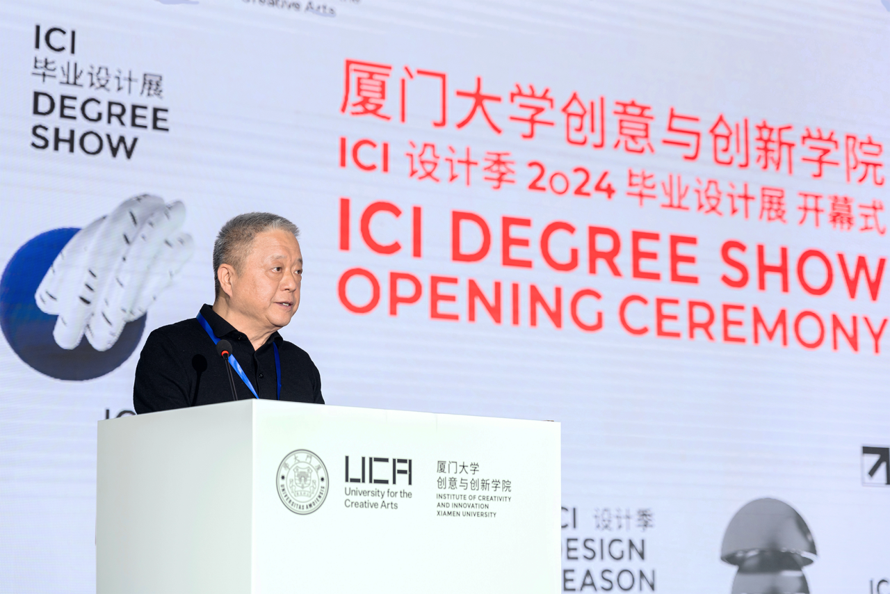 Recently, the 2024 Xiamen University Institute of Creativity and Innovation (ICI) Design Season officially kicked off. On May 19, the opening ceremony of the ICI Degree Show, a highlight of the ICI Design Season 2024, was grandly held at Xiamen Art Museum. The exhibition includes more than 100 Final Major Projects completed by the first cohort of over 100 graduates of the two majors of Visual Communication Design and Environmental Design. The works have demonstrated their exploration and design innovation practice in contemporary creative education in a cross-cultural and interdisciplinary context, showcasing young students' profound reflections on current social issues and innovative solutions.