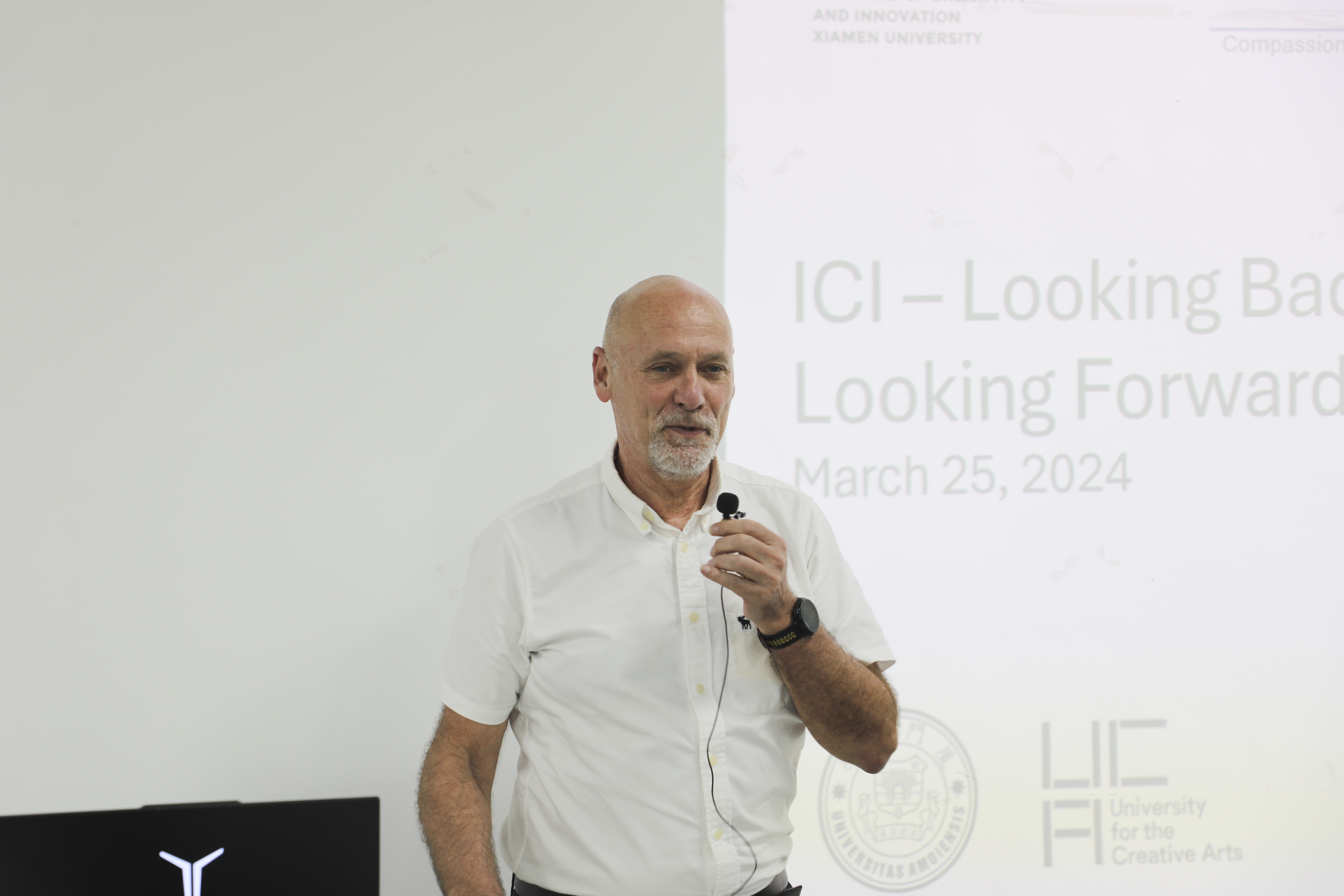 Qin Jian, Dean of ICI, introduced to all faculty and staff the rapid development of the faculty teams over the past three years. He pointed out that the XMU and UCA managers and faculty have frequently visited each other and held exchanges of views and information since 2023, continuously enhancing mutual understanding and advancing the implementation of various tasks. He emphasized the key work for the year 2024, saying that as the institute is set to have the first graduate cohort, he hoped that teachers should be fully involved in guiding the graduates’ final major projects, showcasing the institute's educational achievements with high-quality graduation exhibitions.