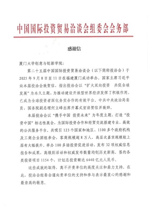 The 25th China International Fair for Investment & Trade (CIFIT) was successfully held from September 8th to 11th at Xiamen International Conference & Exhibition Center. As the only university exhibitor in the public exhibition area of this year's CIFIT, the Institute of Creativity and Innovation made a remarkable appearance with its "Xin Zhi Zao" (New Smart Manufacturing) themed exhibition. Meanwhile, the ICI organized students to participate deeply in volunteer services, showcasing the achievements of Sino-British educational cooperation and innovative educational strength with its distinctive "cross-cultural, cross-disciplinary" features.
