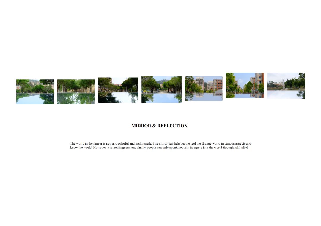 The world in the mirror is colourful and multi-faceted. Mirrors can help people feel and understand the strange world from various positions. At the same time, a mirror and body installation can also inspire people to perceive and explore the world with their own eyes through the interaction with the human body and human movement, so as to realise‘self-disintegration’and‘self-exploration’.