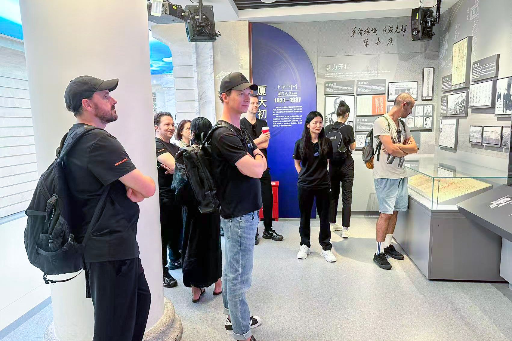 校运会期间,学院还特别安排了思明校区和校史馆参观活动。活动当日天朗气清,微风和煦,外籍教师一行漫步在思明校区绿意盎然的林荫道上,途经波光潋滟的芙蓉湖,无不被独具特色的嘉庚风格建筑群所吸引,深切感受校园浓郁的人文气息与优美的自然环境。在校史馆内,外籍教师们在珍贵的历史文献、老照片及实物展品前驻足细看,聆听讲解员介绍厦门大学自1921年创办以来筚路蓝缕、薪火相传的发展历程,深切感悟学校百余年来坚守教育报国初心、砥砺奋进的精神内核。校园参观结束后,外籍教师一行还前往探访闽南特色建筑,近距离感受闽南民俗文化的独特魅力,进一步增进对在地文化的了解。
