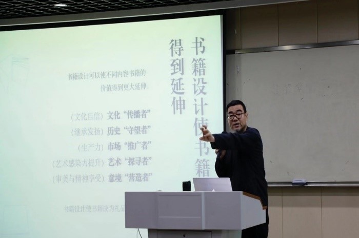 侯立平教授生动地讲述新时代设计人才所需要具备的素养和能力,建议学生从本科就要重视团队合作与创意设计精神,并且鼓励学生多参与实践活动,训练设计思维,创造出有探索性的作品。张志伟教授以自己完成的大量书籍装帧与设计项目和学生们的设计作品为案例,为在座师生分享了书籍设计的理念、创意灵感和在设计的过程中如何去发现和解决出现的一些问题。他谈到书籍的设计过程不仅要考虑内容与版面主题的关系,也要从书籍的结构着手,围绕读者和内容创造更好的阅读体验。