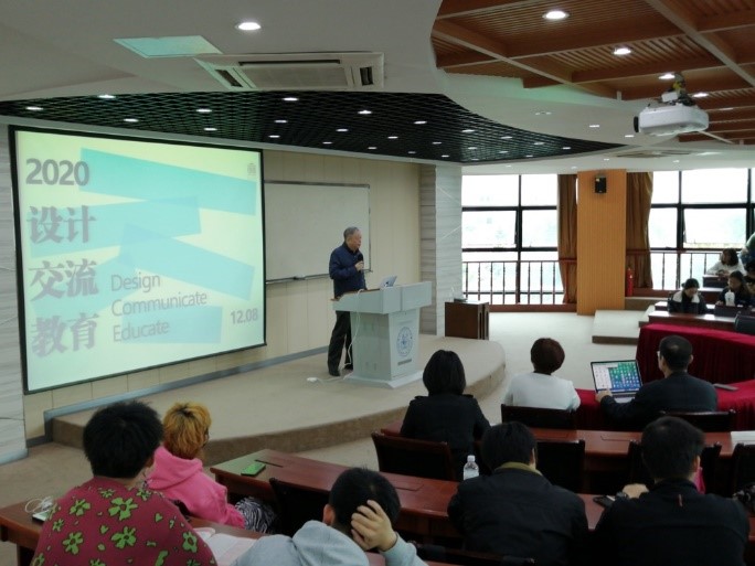 在展览期间,学院邀请到了山东工艺美术学院应用设计学院院长侯立平教授与中央民族大学美术学院博导张志伟教授为我院师生做了两场学术讲座,题目分别是《新时代设计人才之内外交互培养方案》和《诗意阅读理性设计》,讲座由秦俭院长主持。