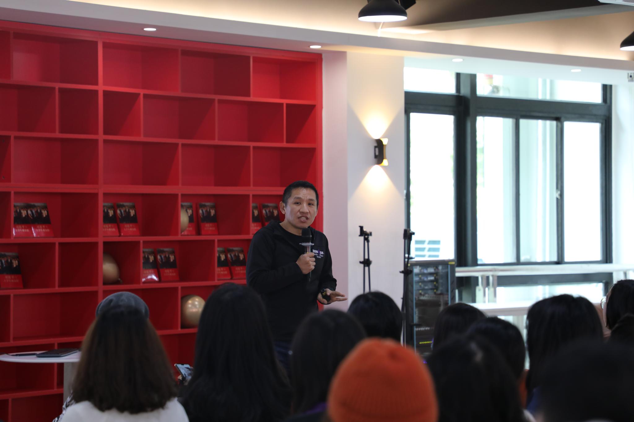 座谈结束后,文富俊为创意与创新学院学生带来题为“游戏行业发展概况”的讲座。他由浅及深地向大家讲述游戏行业发展的概况,详细介绍了全球游戏行业现状,以网易游戏产品为案例,深入分析当前热门游戏的共同特点,并对比各地区游戏行业的差异,让同学们更加直观地了解游戏企业面临的机遇和挑战。他认为,未来游戏趋势是在满足多元和真实的交互需求下,以技术发展为主要支撑,从而实现游戏产业的转型升级。作为讲座的主持人,叶蓬副教授希望同学们通过讲座嘉宾分享的工作经验和行业前沿信息,不断提升自身的专业水平和能力。讲座结束后,文富俊与同学们展开了深入交流。