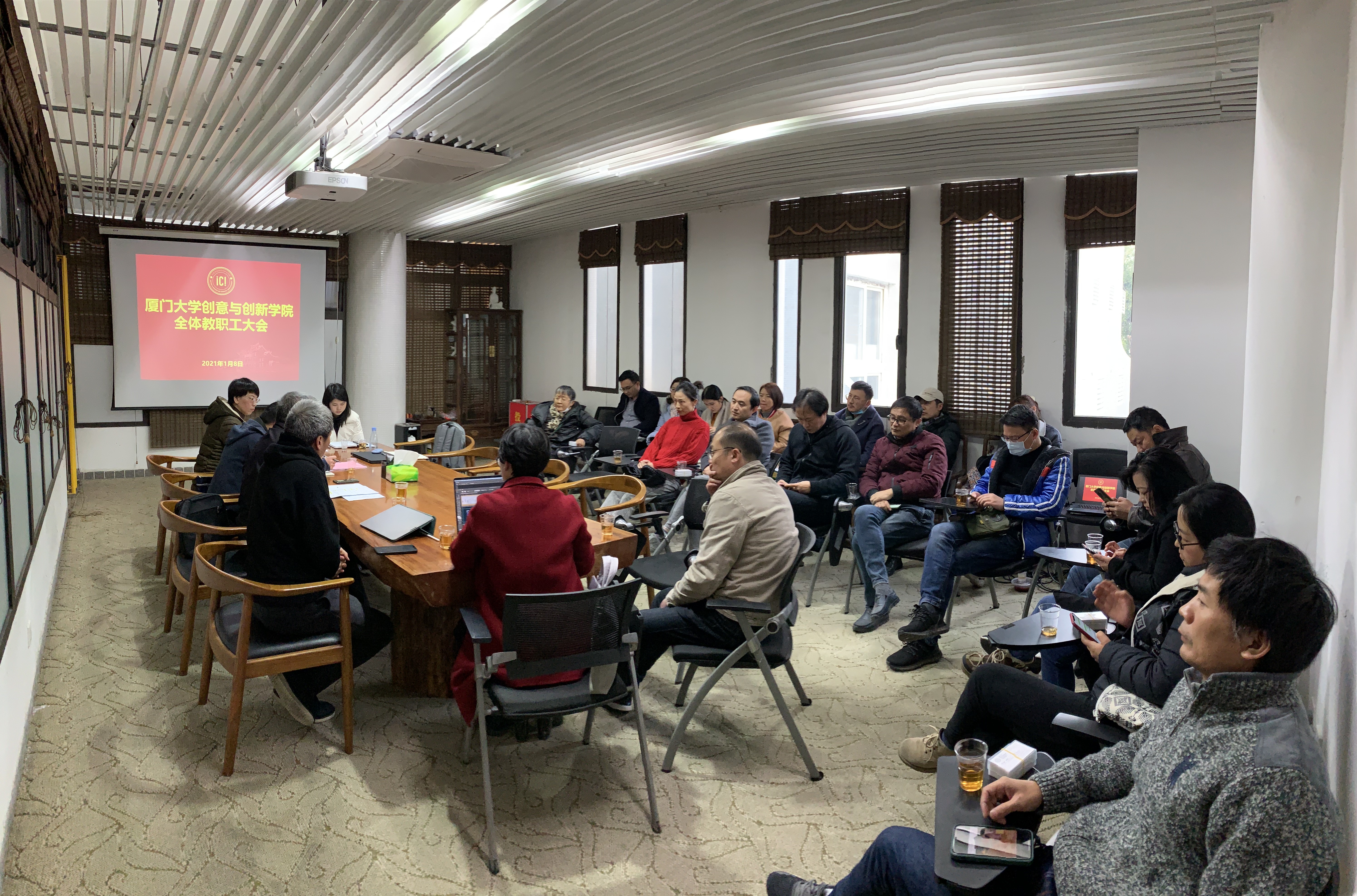 2020年1月8日下午,创意与创新学院在艺术学院两岸书法交流中心会议室召开了全体教职工大会,总结了上一年度工作成绩,为新学期的各项工作进行了规划和部署。学院党政领导班子成员及全体教职员工参加了会议。会议由院长秦俭主持。