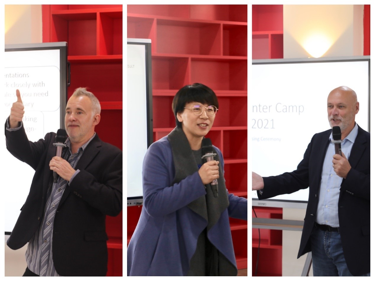 副院长黄琛对全体同学在冬令营中的表现给予了高度肯定,希望同学们能真正将英语转化为自身的能力之一。作为英语专业出身的她,还向同学们分享了英语学习的小技巧,鼓励同学们持之以恒学好英语,为后续英方课程顺利学习打下扎实基础。最后,她对近期疫情防控工作和学生返乡安全事项进行了布置和强调。