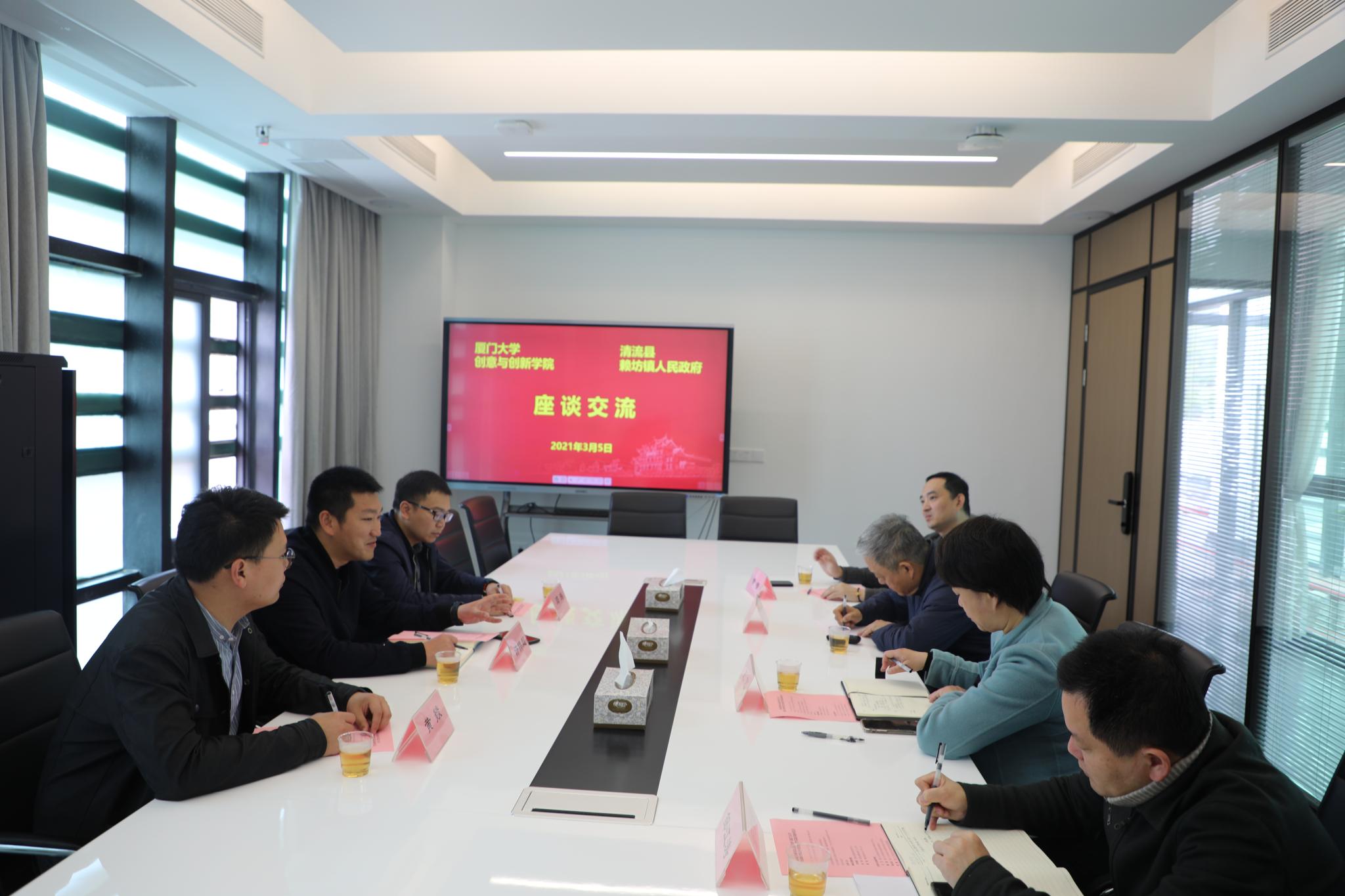 2021年3月5日上午,我院与清流县赖坊镇人民政府在学院六楼会议室举办共建校外实践基地座谈会。清流县赖坊镇党委书记许伟超、人大主席邓玮等一行和学院党总支书记王艺、院长秦俭、副书记邹江涛、教师代表黄智等出席座谈。