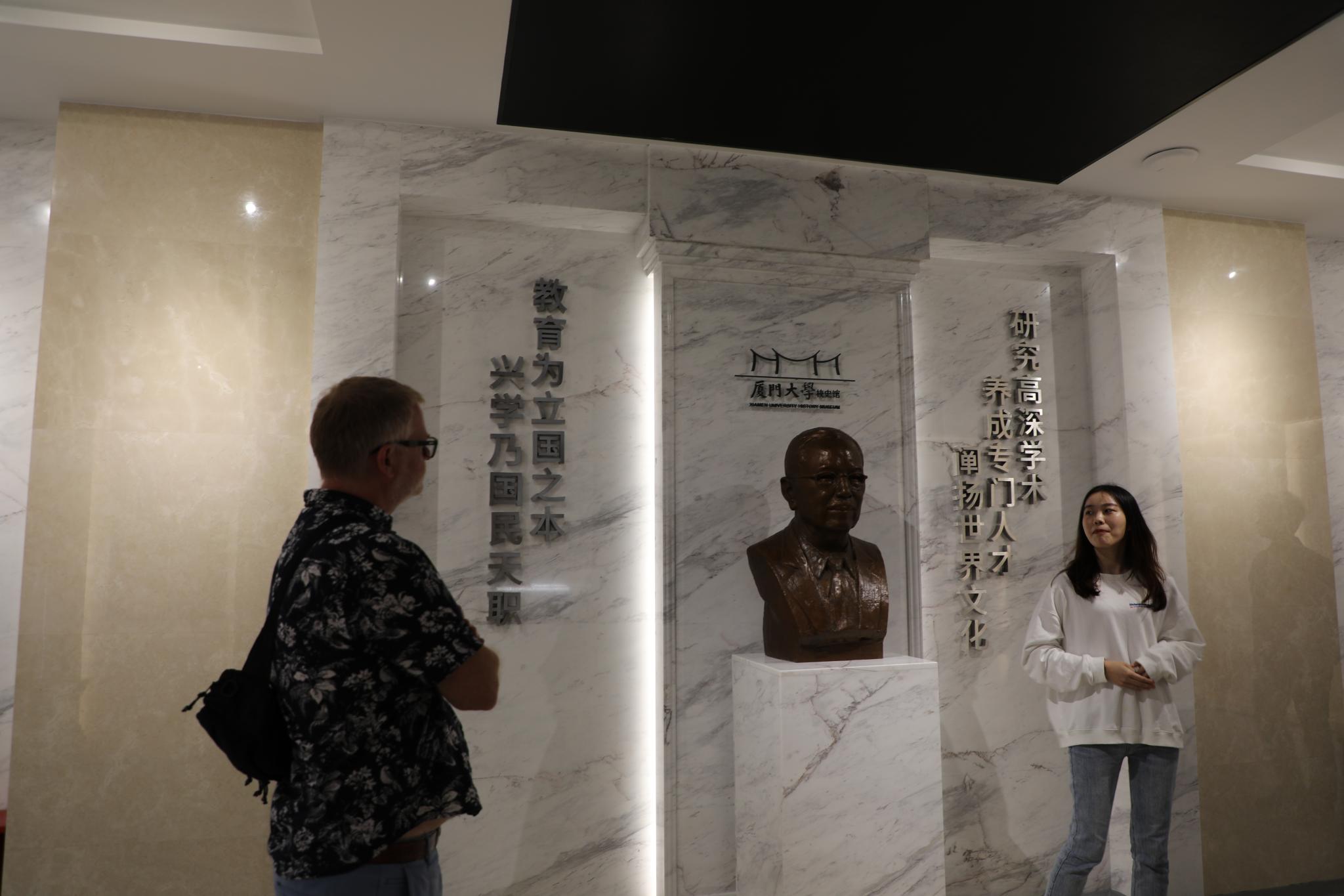 在厦大百年校史馆厚重的历史气息中,来自三个国家的外籍教师们共同回顾了厦大一百年的创校历程,他们聆听了校主陈嘉庚先生教育兴国、倾资创办厦门大学的感人故事,重温了我校内迁长汀后弦歌不辍的自强之路;感受新中国成立后,我校延续自立自强精神,不断创新奋力前行的动人篇章。在悠扬的校歌中,外教们为校主陈嘉庚先生毁家兴学的气魄、坚定的决心和爱国精神深深感动。通过一个个的故事讲述,通过一张张图片的介绍,通过一串串的数字折射,外籍教师们慢慢认识了萨本栋、罗扬才、王亚南、陈景润这些厦大人心中最熟悉的人物,读懂了厦大人独有的“四种精神”。