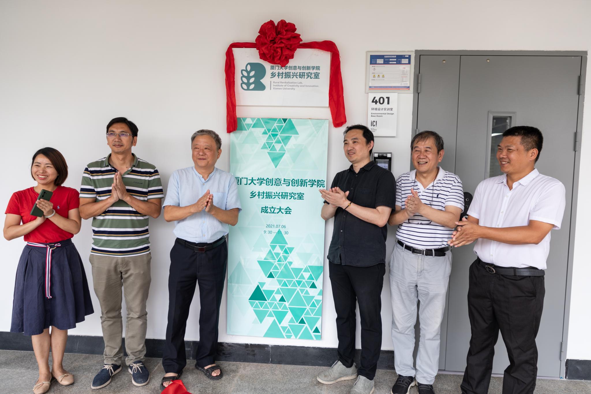 7月6日,“厦门大学创意与创新学院乡村振兴研究室”在学院大楼举行揭牌仪式,院长秦俭教授、研究室成员陈亮教授、黄金良教授、杨志伟工程师、黄智博士出席。