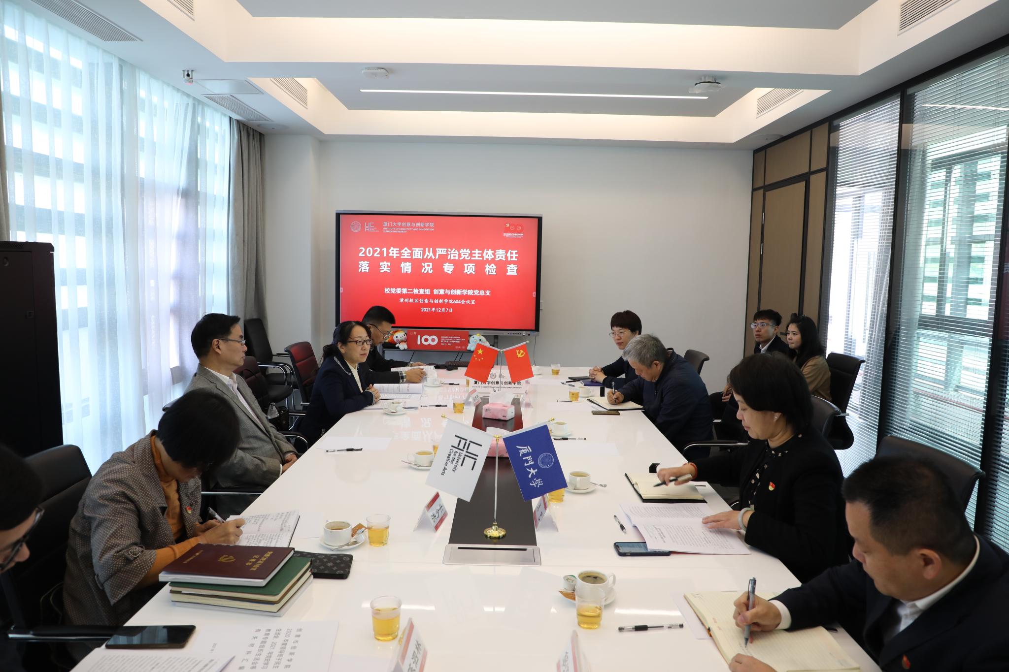 12月7日上午,杨斌副校长率领校党委第二检查组一行到创意与创新学院开展2021年全面从严治党主体责任落实情况检查。学院党政领导班子全体成员参加工作汇报会。