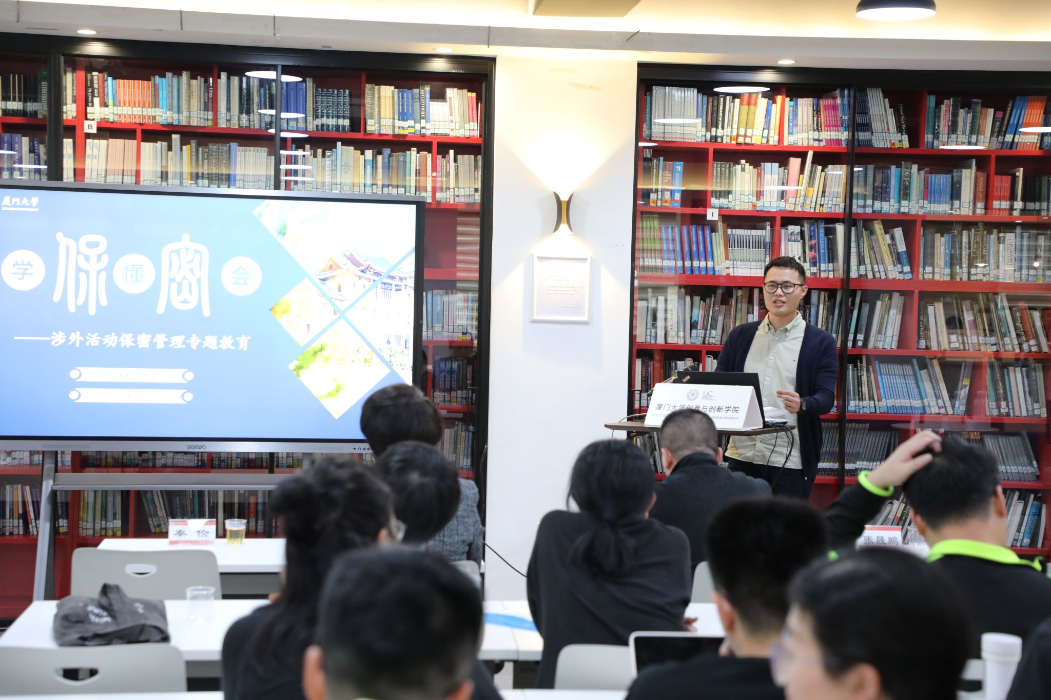 随后,学院党总支邹江涛副书记带领教职工共同学习习近平总书记关于师德师风的重要论述,结合学院实际,对《新时代高校教师职业行为十项准则》《教育部关于高校教师师德失范行为处理的指导意见》《违反高校教师职业行为十项准则典型案例》进行详细讲解。学校办公室张晟鹏老师从保密形势、保密常识和保密技能三个方面展开讲述,针对涉外活动保密管理对全体中方教职工做了一次系统培训。