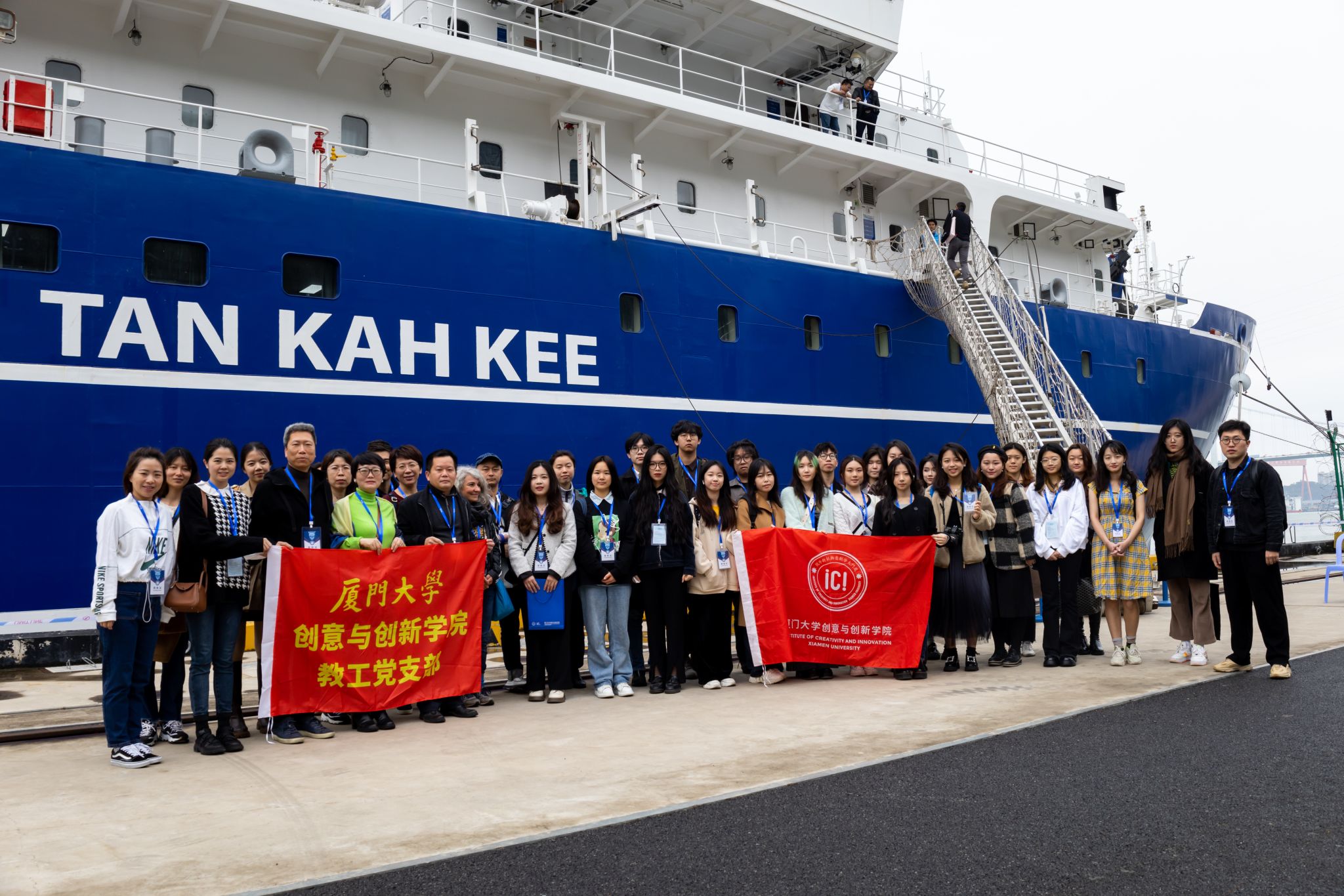 春风和煦,碧海蓝天。2023年4月1日上午,创意与创新学院党总支副书记邹江涛、副院长甘森忠、黄琛,教工党支部、本科生第一党支部和外籍教师一行40余人前往以厦门大学校主陈嘉庚先生之名命名的“嘉庚”号科考船参观学习。
