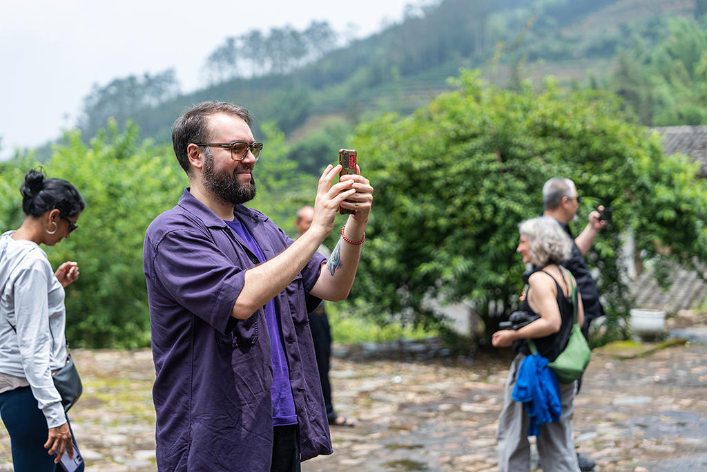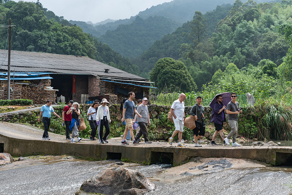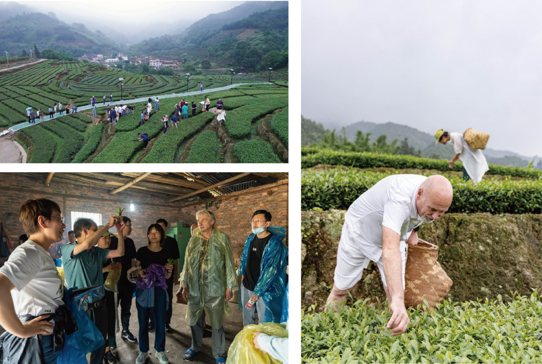 中午一场大雨后,空气更加清晰。中外方老师分成四组,在漳州市非物质文化遗产制茶技艺传承人李钦富,厦大南靖校友会副会长、县农业农村局二级主任科员吴景山,厦大南靖校友会副会长兼秘书长、县审计局二级主任科员陈利成的带领下,深入茶园一同采茶、制茶,听茶文化讲解,了解当地茶产业发展现状。