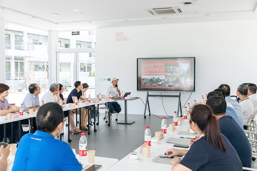 蔡志勇副主任一行首先听取了学院专任教师岳子泓与其科研团队Panda-monium Creative Collective针对大径村做的乡村提升规划汇报。今年3月,为响应学院用学科力量服务区域发展的号召,Panda-monium团队深入学校周边社区,对大径村产业现状、空间环境、人群对象深入调研,从乡村产业升级,配套空间改造与规划,商业活动策划等方面对大径村提升进行全方位设计。在加强传统村落和乡村特色风貌保护的同时,Panda-monium 团队也为大径村专门打造了一套振兴策略,建议因地制宜大力发展年轻人社区和杨梅特色产业,推进大径村一二三产业融合发展,从产业、人才、文化、生态、组织各角度提出创新性的设计规划,旨在打造“村·校”融合的全新生态,打造年轻化的乡村品牌,为周边乡村的发展深掘全新的内生动力。