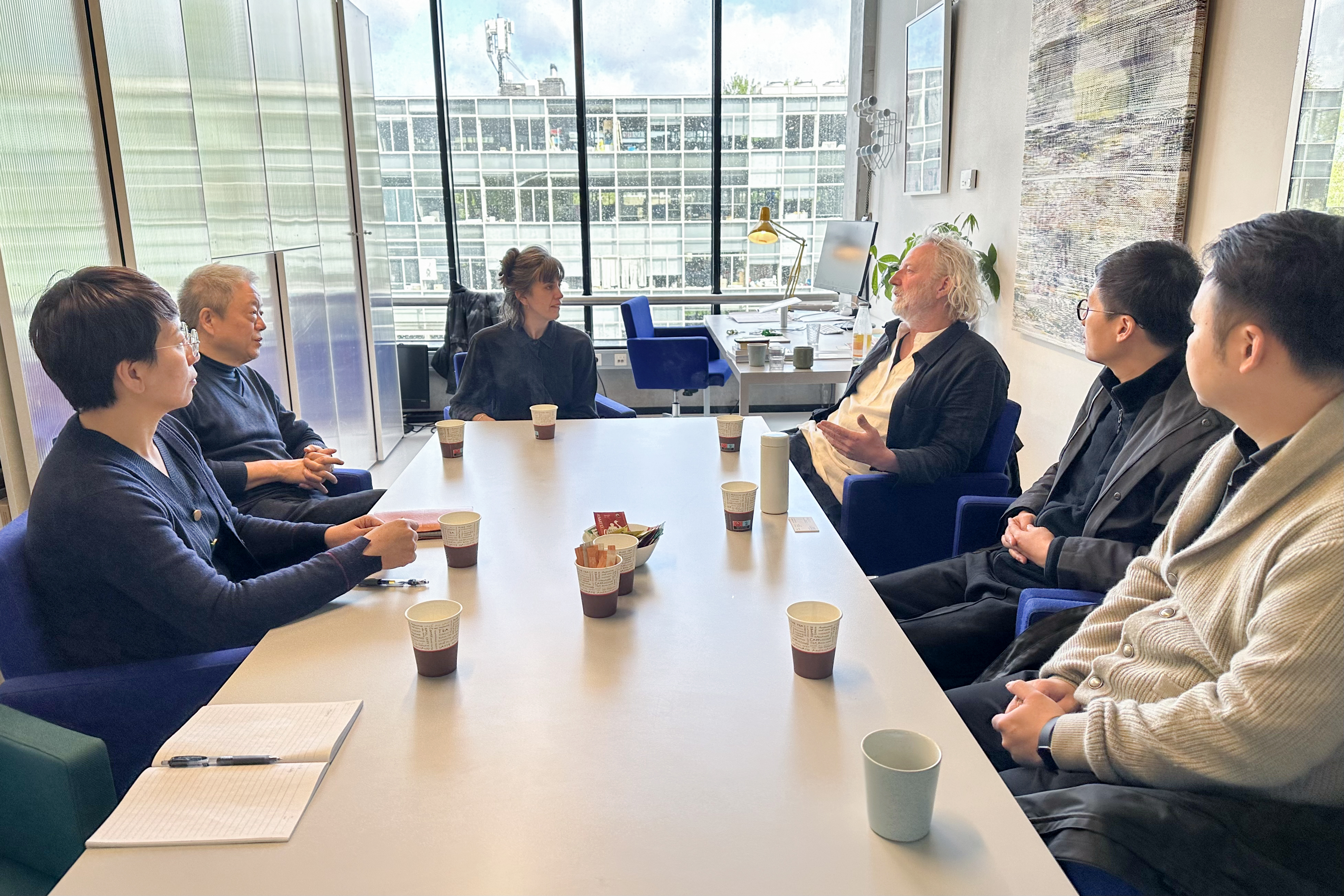 秦俭一行随后访问了海牙皇家艺术学院,与皇家艺术学院交互媒体设计主任Janine Huizenga和国际事务主任Aparajita Dutta座谈,表达了在既往合作基础上进一步增进相互了解、加强人员互访、促进学术交流的愿景。双方就打造优势互补、资源共享的合作模式交换意见。