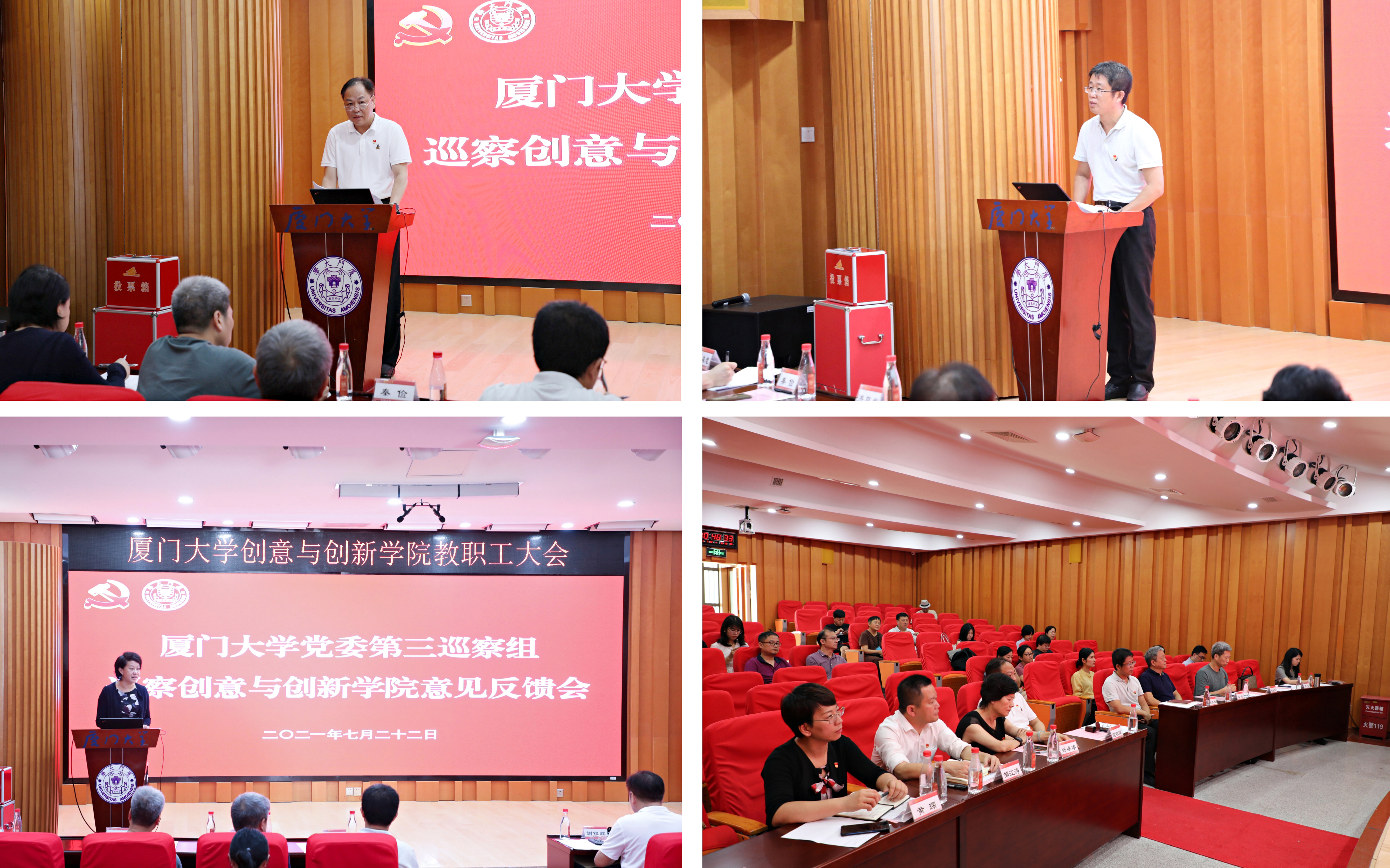 7月22日上午,校党委第六轮巡察第三巡察组召开巡察创意与创新学院工作反馈大会。第三巡察组组长谢银辉、副组长郑冰冰,校党委巡察办副主任洪真裁出席大会。大会由创意与创新学院党总支书记王艺主持,学院全体党政领导班子成员、全体教职员工参加会议。