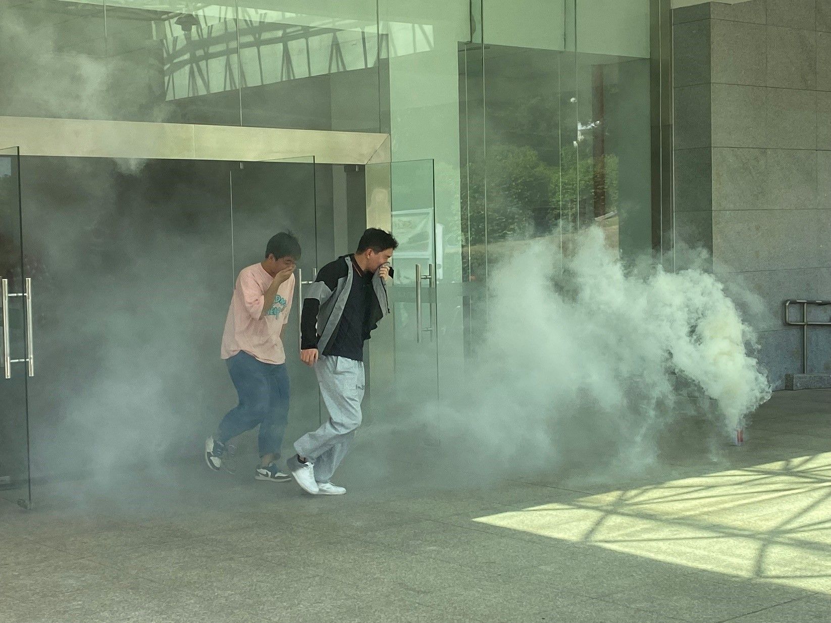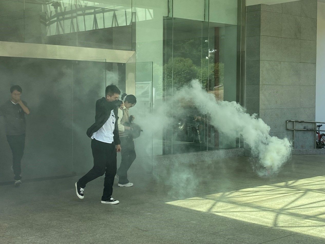 11月9日上午,伴随滚滚浓烟,我院消防疏散演练正式开始。师生们手捂口鼻,在工作人员的指引下,按照疏散线路,秩序井然地小跑下楼。消防官兵“火”速行动,迅速爬楼,有效处置。整个疏散演练过程历时短、效率高,全体师生真正做到了快速、安全、有序。