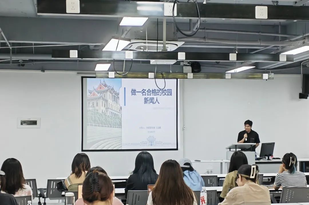 9月21日,厦门大学创意与创新学院“创意新生代 - 青年宣传企划”宣传技能实训班(第二期)开班暨新闻写作专题培训在“一站式”学生社区215顺利举办。本次活动由创意与创新学院团委主办,创意与创新学院宣传中心承办,首期培训以“做一名合格的校园新闻人”为主题,邀请厦门大学党委宣传部王志鹏老师担任主讲人,共有100余名学生参加。