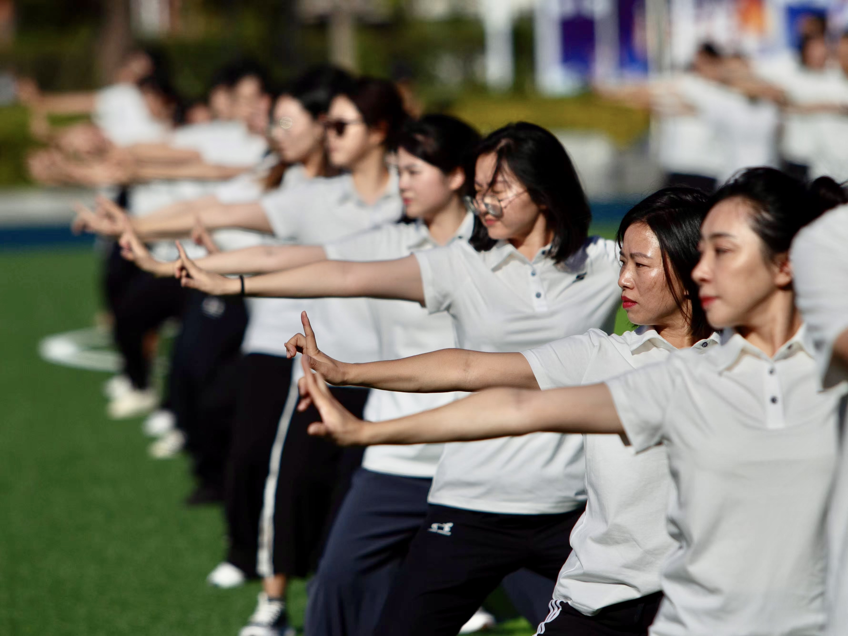 活动开幕后,首先进行的是八段锦和健身操集体展演环节。八段锦动作柔和连绵,滑利流畅;健身操则活力四射,充满激情。教职工们整齐舒展的动作,热情洋溢的笑容,展现了学院教职工昂扬向上的精神风貌。