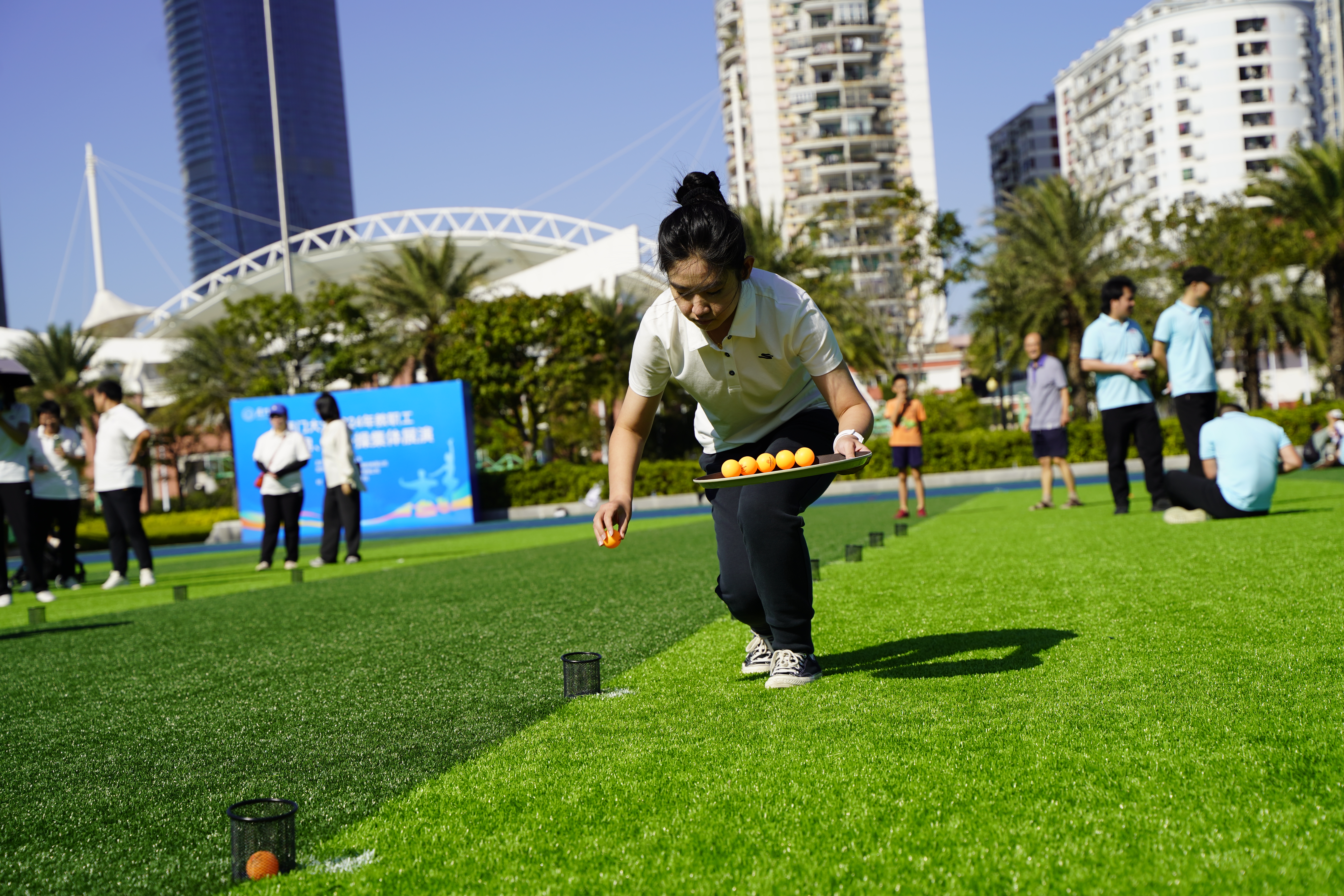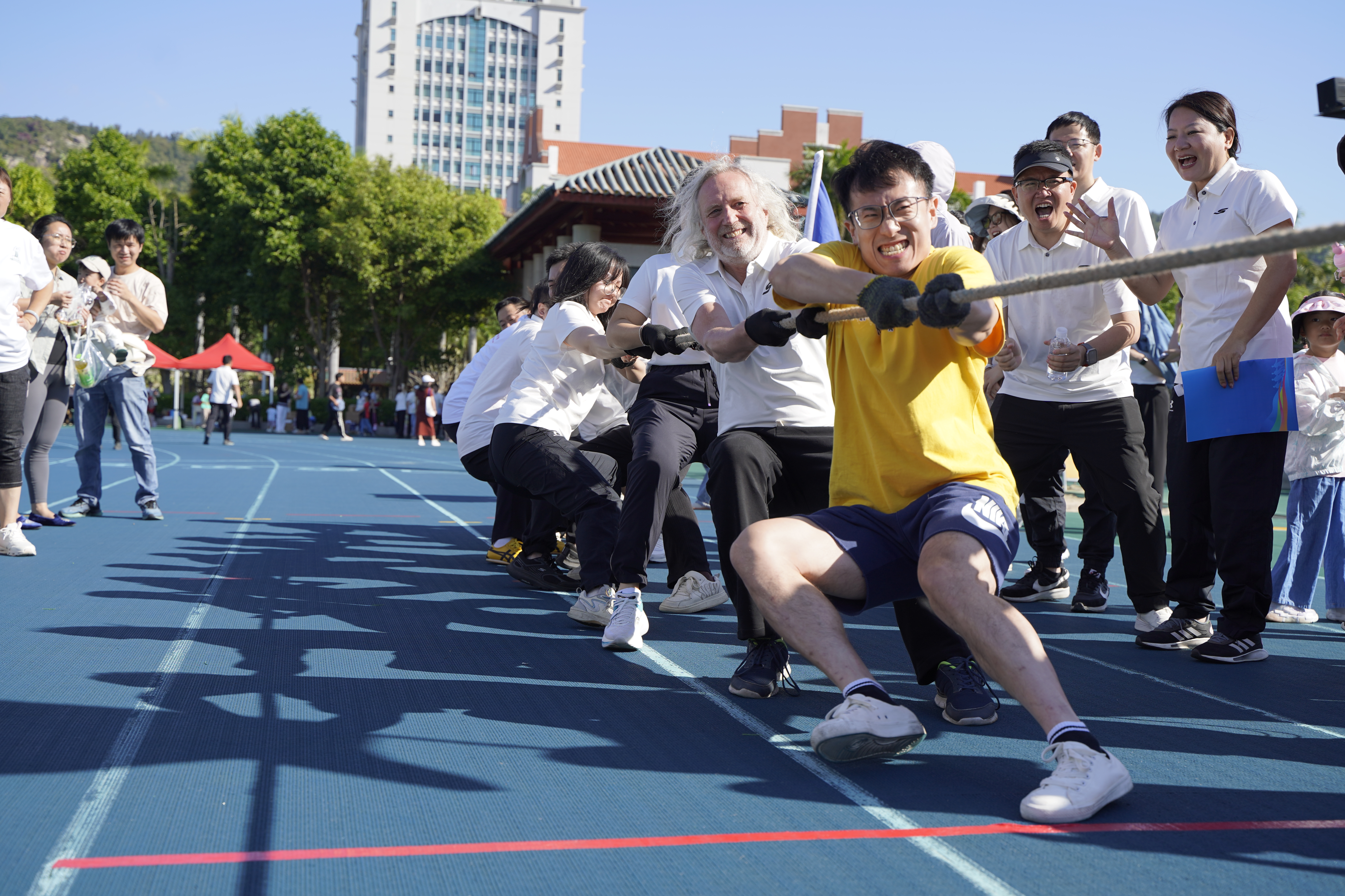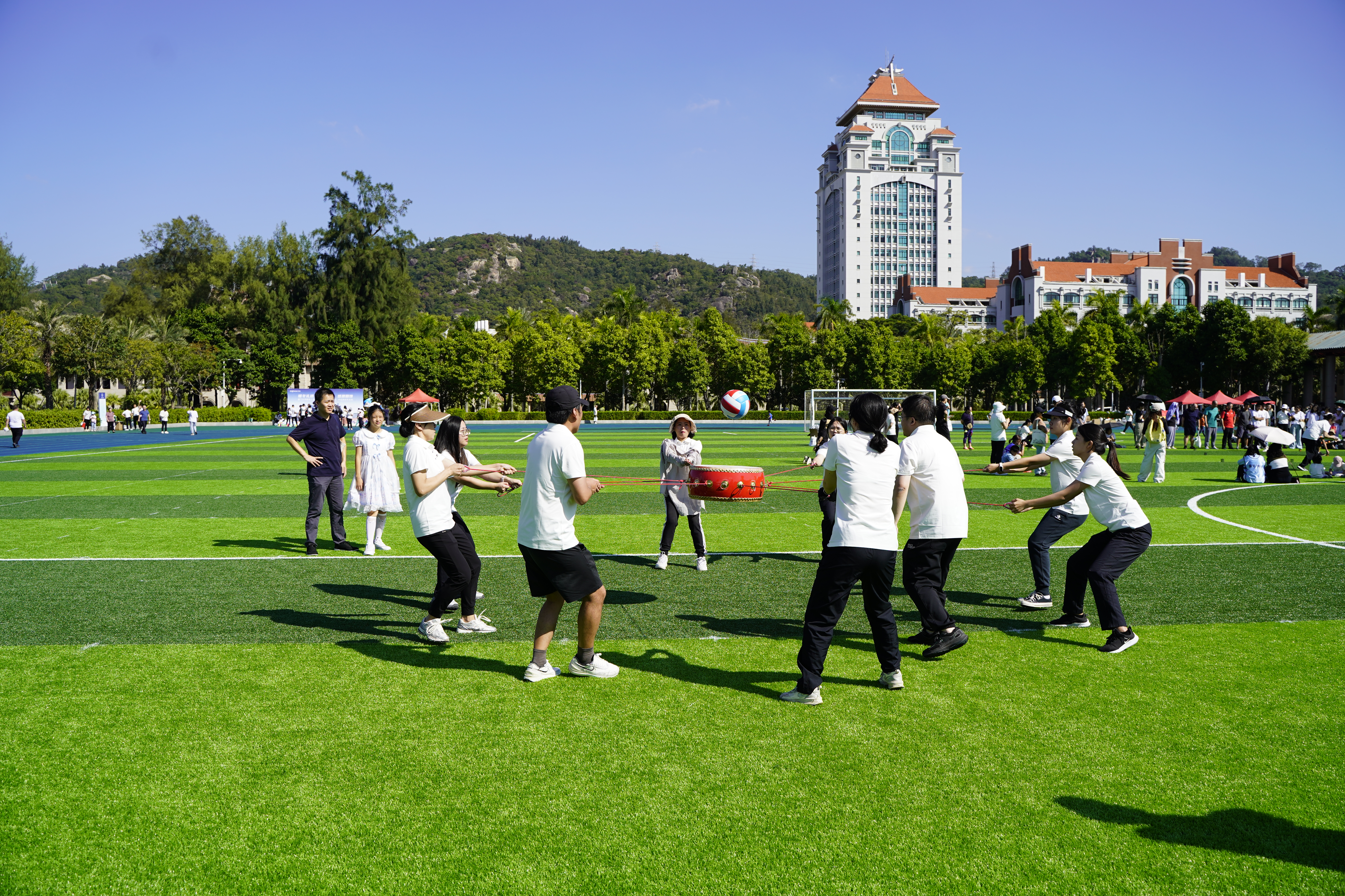为深入学习贯彻党的二十大和二十届二中、三中全会精神,深入贯彻落实《“健康中国2030”规划纲要》《关于构建更高水平的全民健身公共服务体系的意见》,引导教职工积极锻炼,增强体质和健康水平,11月17日,厦门大学校工会主办的2024年教职工趣味运动会在演武场举行。我院共有35名中外方教职工代表组成参赛队伍,积极参与赛事。