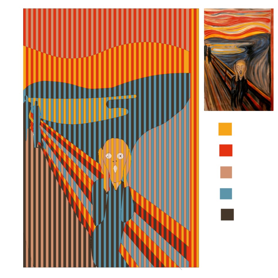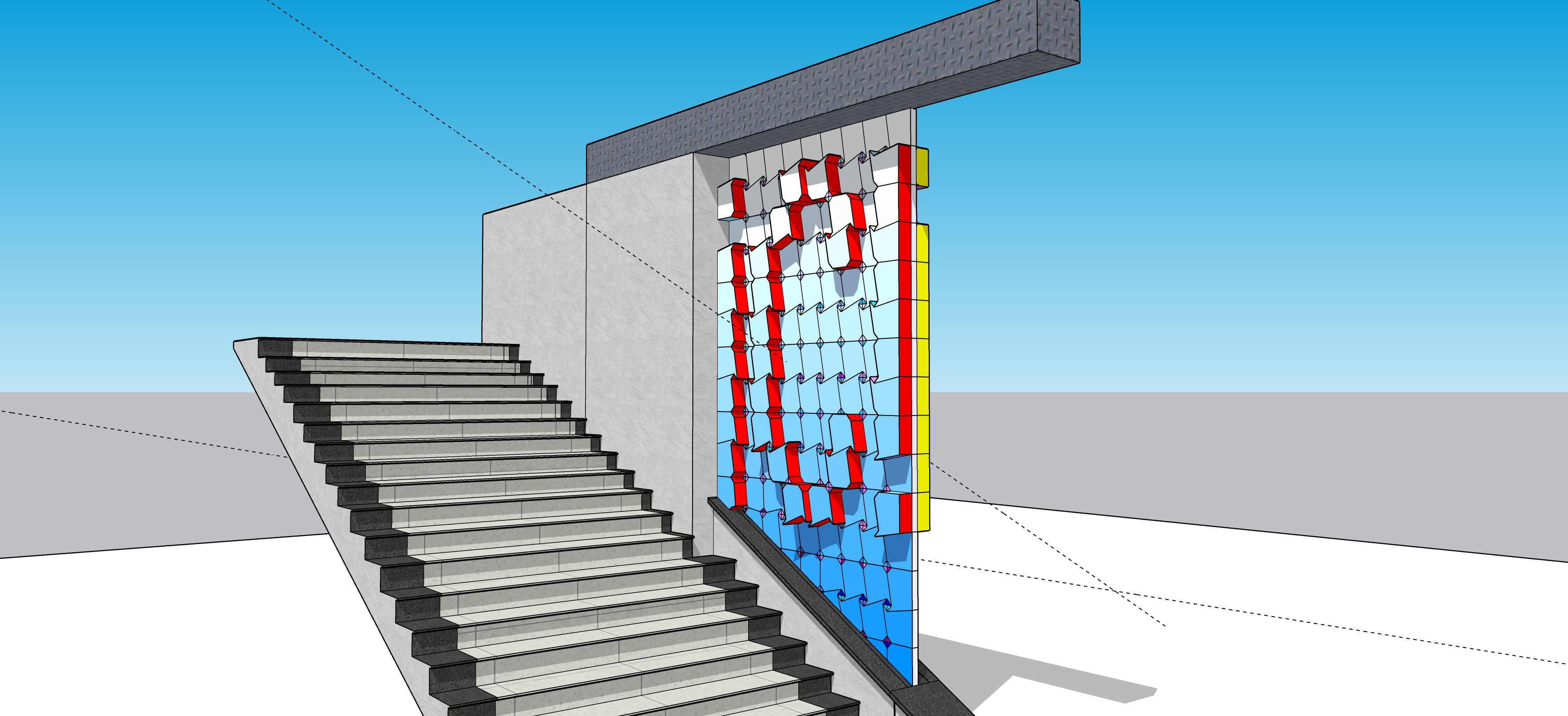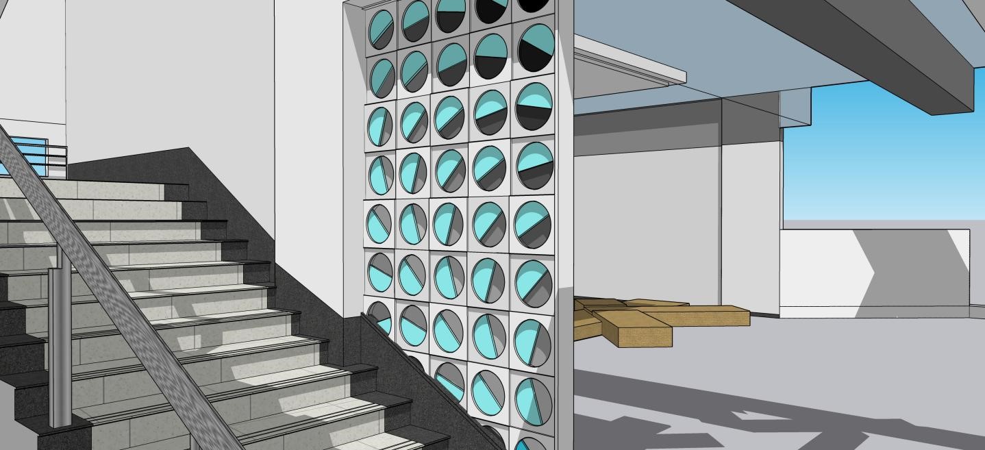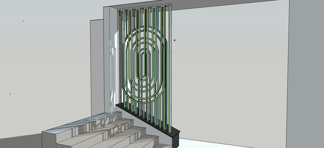 作业要求:要求学生结合所学知识在创新大楼1-5楼的楼梯间,利用点、线及视错觉等原理为每层各设计一个隔断屏风,要考虑屏风的材质及加工的便利性。