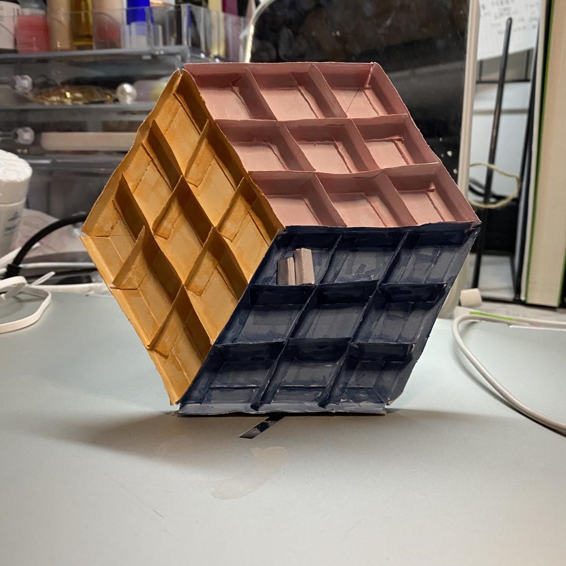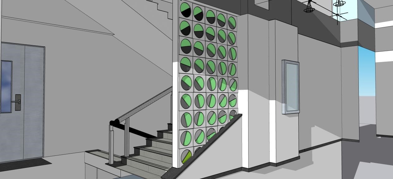 总结:最后的大作业我们选出了7件入围的作品,最终将评选出5件作品进行实施,装扮在我们的创新大楼内,并且这个楼梯间的隔断将成为我们学院学生设计实践的展示窗口,今后每年会评选一件最优作品进行更换,让原本教学楼内的灰空间变成一个时空的作品展示画廊。