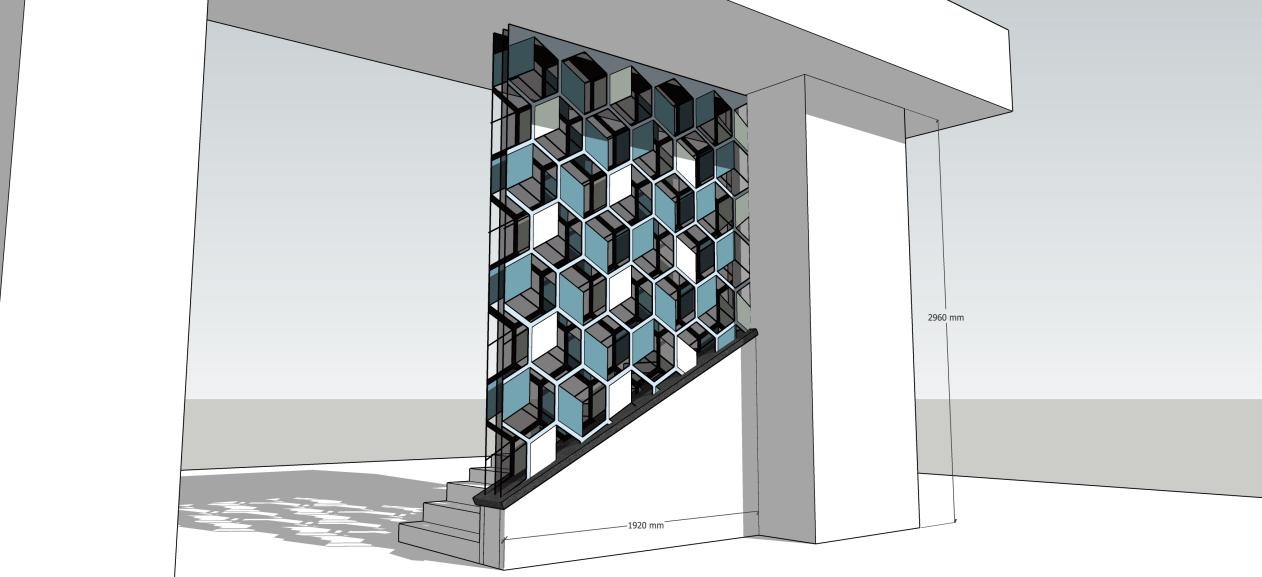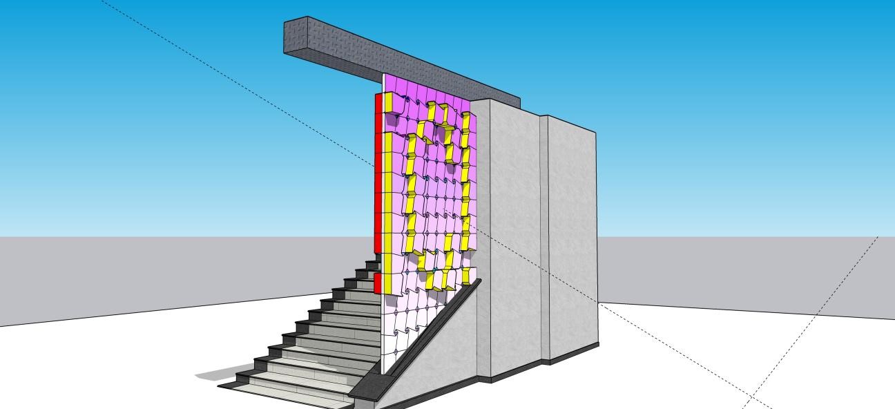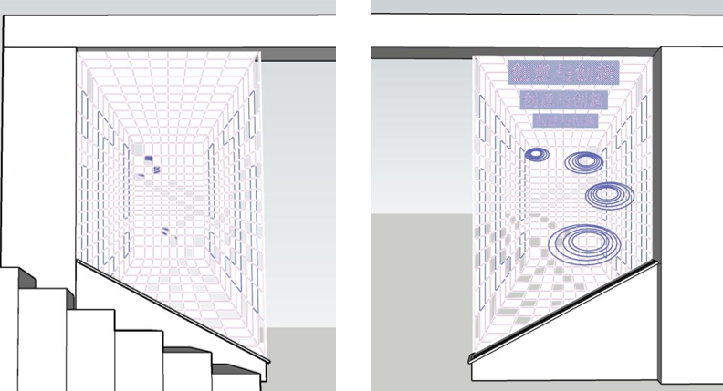 本课程共有7周,授课对象为创意与创新学院大一的新生,课程通过对构成形式的基本元素:点、线、面的介绍及构成形状的基本方法、影响形式判断的因素和三维形式的特殊构成关系几个方面的讲解并在实际案例中的运用等,让学生了解点、线、面、色彩和光影等在设计过程中的重要性和运用技巧。授课过程中让学生结合手绘、电脑制图、模型等不同方式结合理论知识每周进行1-2个的作业练习,并在最后2周,让学生将所学的理论知识结合教学楼楼梯间所需隔断进行设计,并从100名学生中选取前5名最优者作为“中标”方案,在老师的指导下落地实施,即满足教学楼楼梯间隔断的实际需求,也可作为学生展示作品,教学结合实践的有效示范。