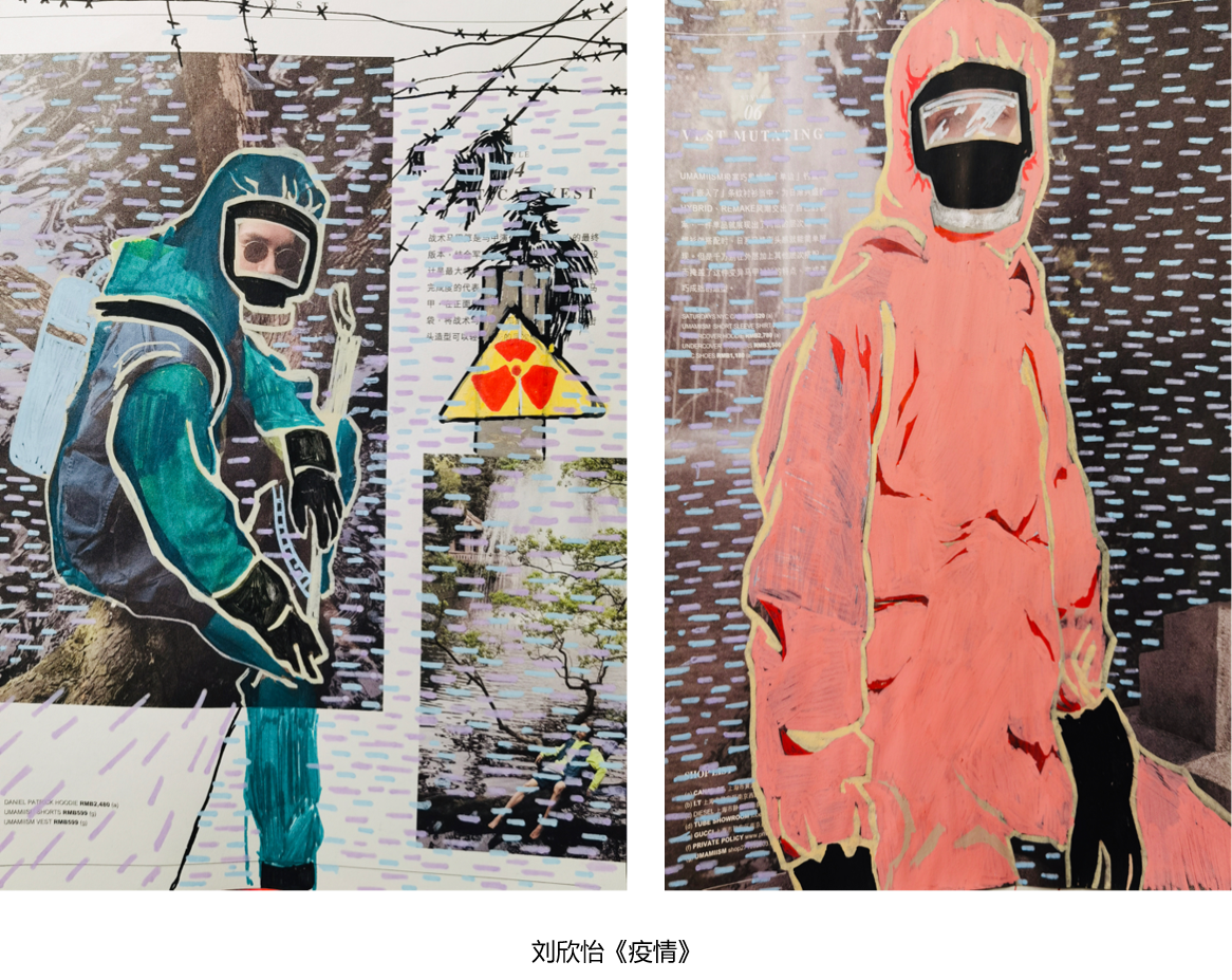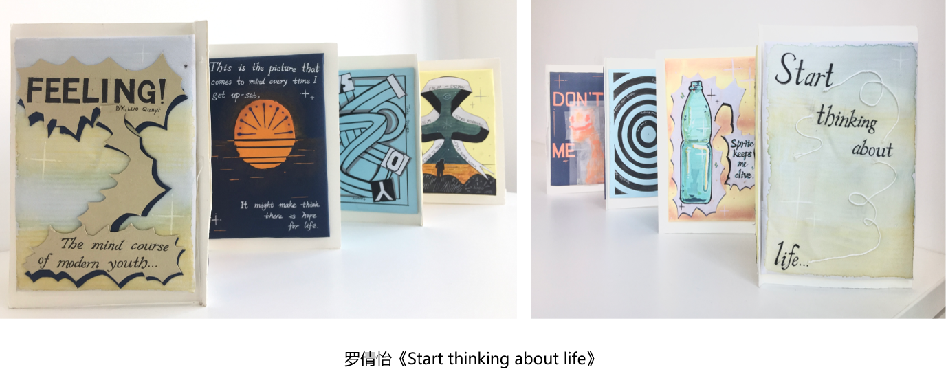 蒲香杉同学:第一次上造型基础课前,本以为是素描一类的基础课程。上课前的我一直把造型和设计分为两种不同的领域,并且理解的有些极端化,认为造型是纯绘画,设计是纯平面化。现在想来这样的认知过于狭隘了。几次作业下来,虽然课题讨论的问题很有趣,但创作过程中也感到不知所措和纠结。例如第一次作业《人造人》脱离了考前套路的头像绘画,开始以另一种方式思考人的状态。这个作业也开启了我对“造型”与“设计”这个概念的重新认知和对视觉传达的重新思考。通过这次的练习让我明白造型和设计两个词语密不可分,也让我不再纠结和迷茫于这两个词语。