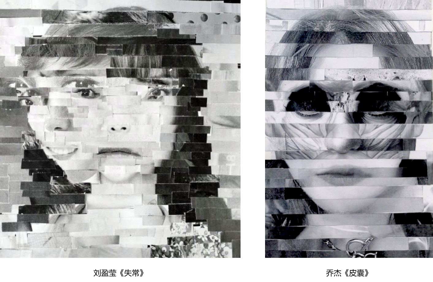 作业1(题目:人造人):每位同学拍30张人物肖像照片,并将其打印成8开的黑白画面,然后把它们切割成有规则的条状(大约1厘米的宽度),并对其进行组合,创造出一个全新的人物肖像。