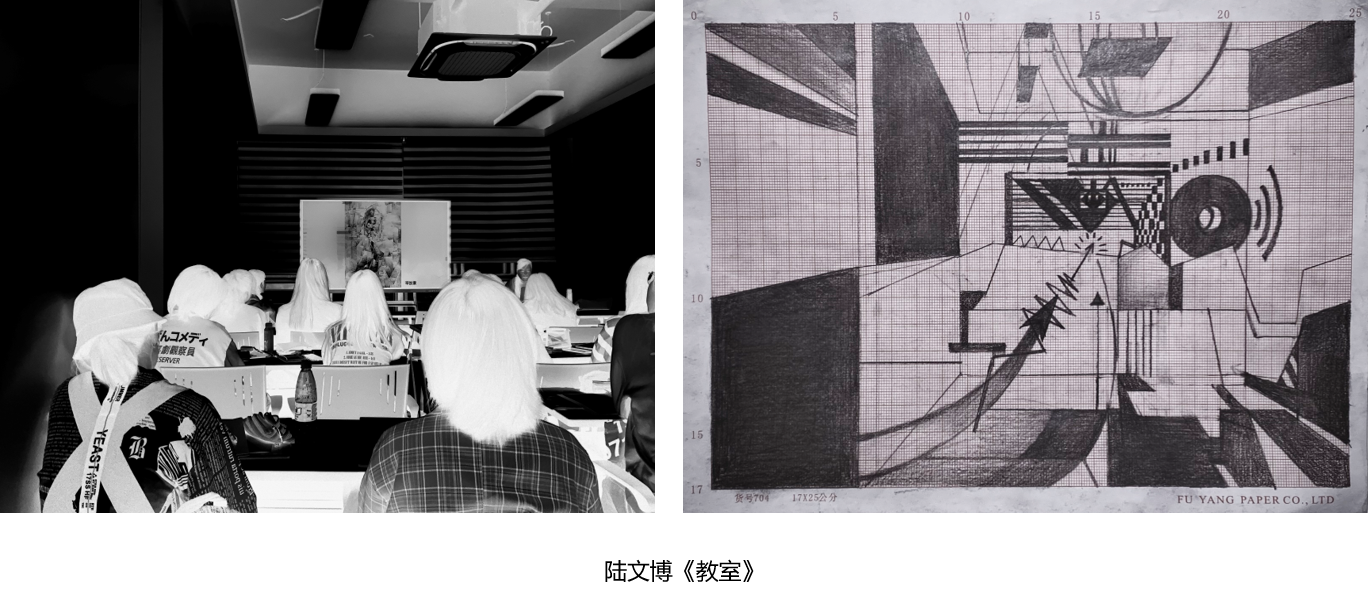 为此,课程中提出了让同学们在实际教学楼空间中去结合前面两个板块提到的对造型问题的思考,去创造一个“新”的空间、现有空间和虚构空间的融合。
