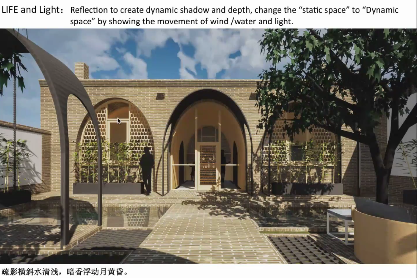 对于建筑,孙小暖老师指出,建筑本身没有生命,但能激起使用者情感的建筑就是有生命的建筑。同时她引用著名评论家Matthew Allen“轰动建筑”这一说,指出环境中的组成元素,即声、光、空间能为人类提供特殊氛围,从而将他们带入情感世界中的建筑。
