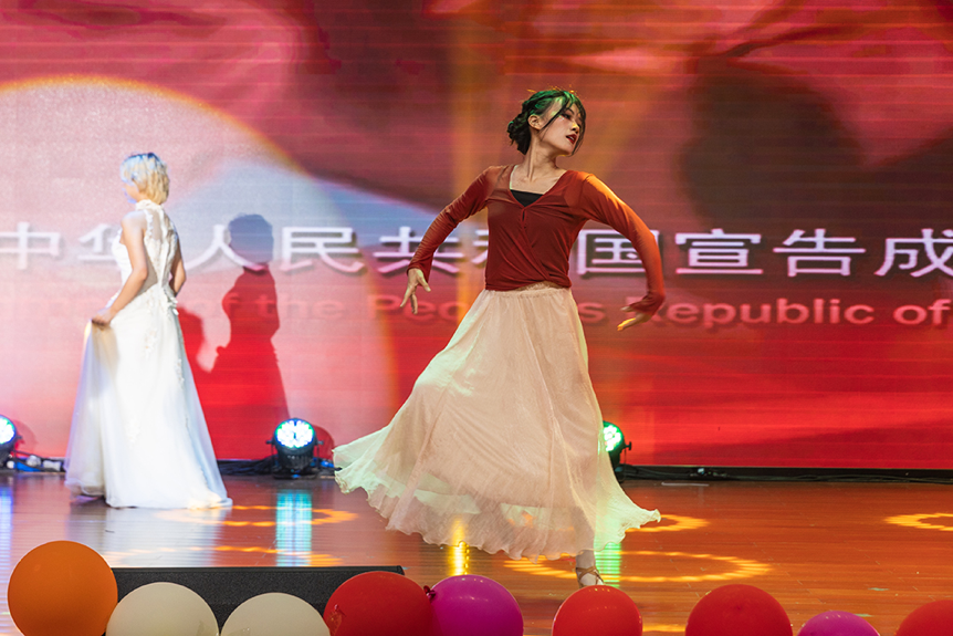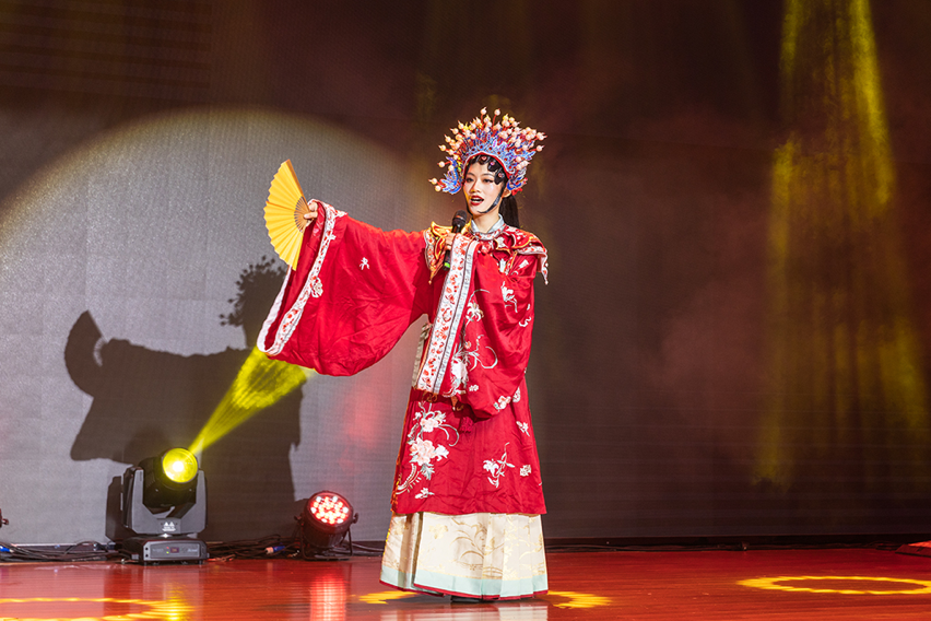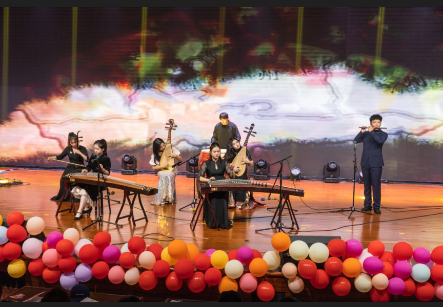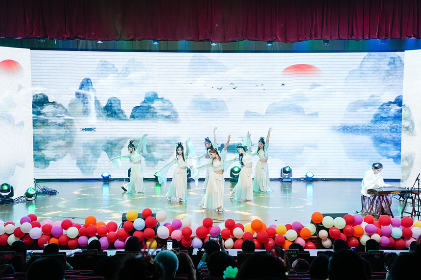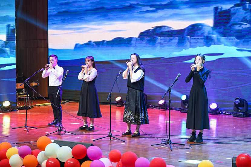 伴随悠悠陶笛,一曲《幻化成风》揭开了本场晚会的第一篇章“恰少年,奋楫扬帆”。一瞬间,一切都如同风在耳边回响,一切都化为向前的动力。