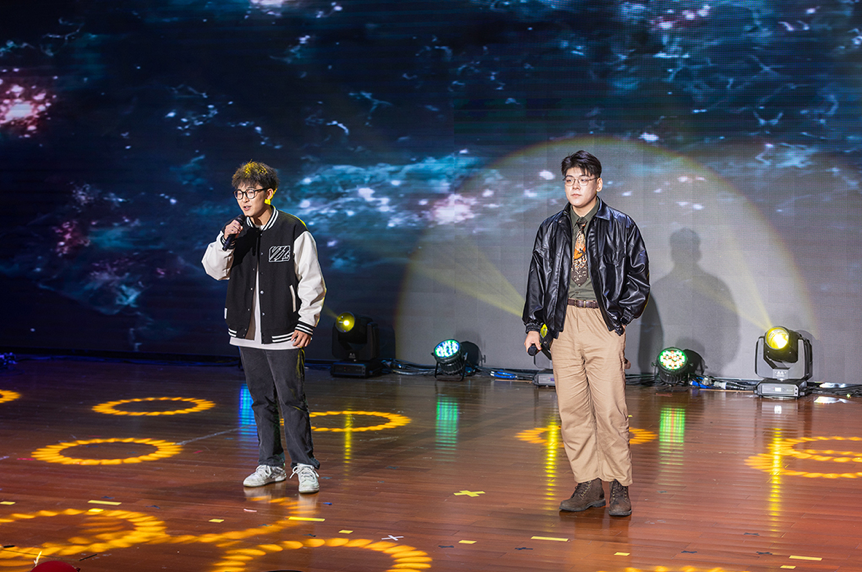 为展现创院学子青春洋溢的精神风貌,第二篇章以“正青春,尽展芳华”为主题。原创Rap歌曲《Runaway》中,同学们在一唱一和中展现出对青春美好的期许。