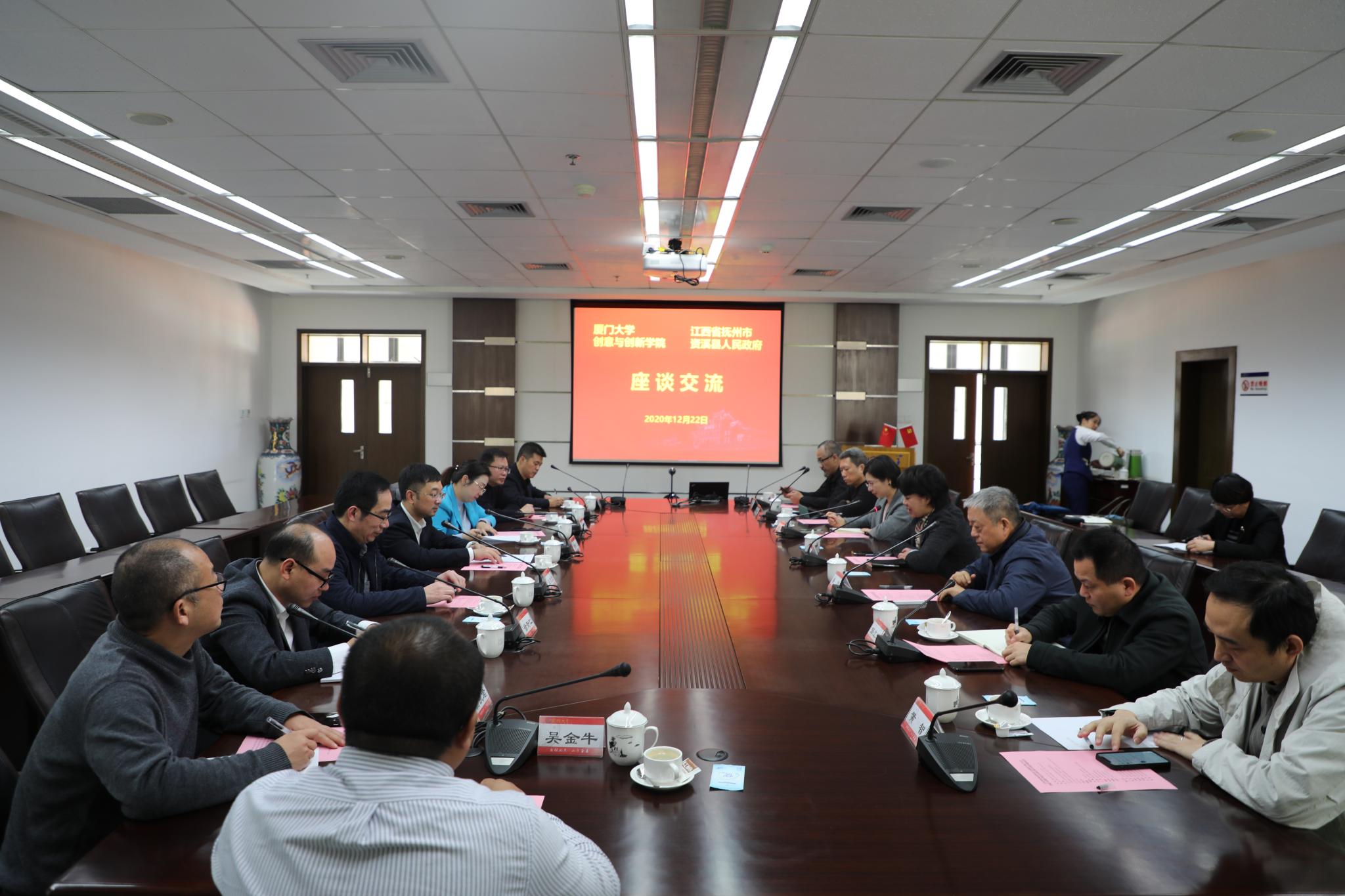 12月22日上午,江西省抚州市资溪县人民政府前来漳州校区与创意与创新学院座谈合作建设教学实践基地。资溪县委书记黄智迅,县委常委、组织部部长李娜等一行8人,创意与创新学院党政领导班子,以及专业教师代表出席了会议。会议由创意与创新学院党总支书记王艺主持。