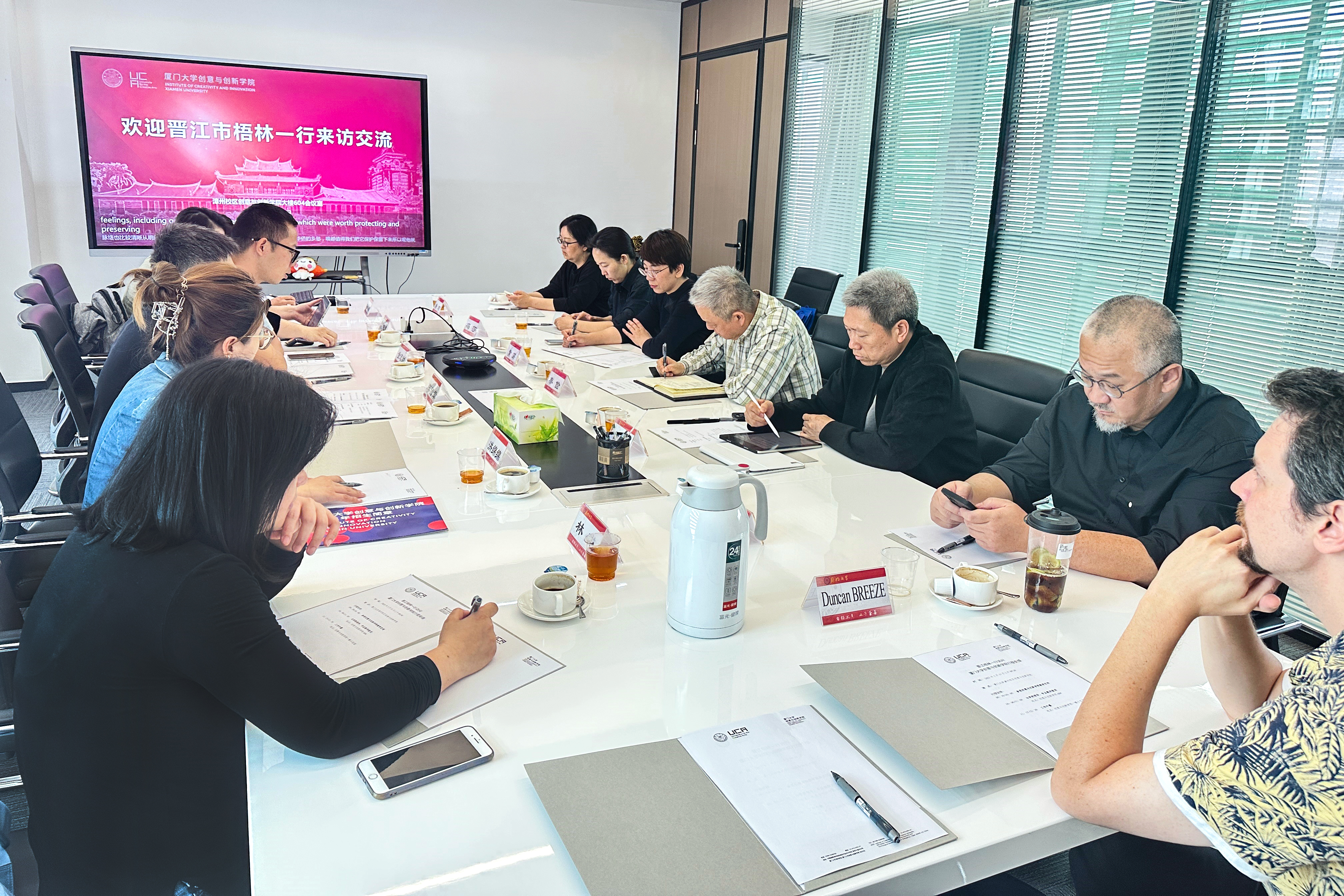 2023年5月11日,晋江市融媒体中心副主任、市文联副主席陈诗章,梧林项目办副主任金宏勃,晋江市梧林青普文旅运营公司副总经理洪绵绵一行到学院访问。双方就如何利用设计的力量助力以梧林为代表的古村落文化传统活化和乡村振兴展开探讨。